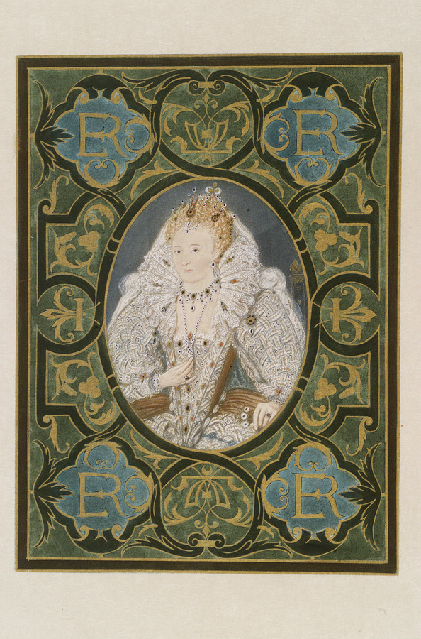 - Title: Portrait of Queen Elizabeth I, surrounded by an ornate design and her monograms.
