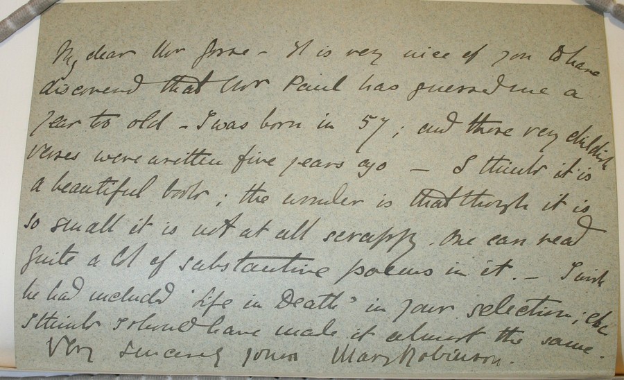 - Title: Letter from A. Mary F. Robinson to Sir Edmund Gosse; inserted in Living English poets. 1883