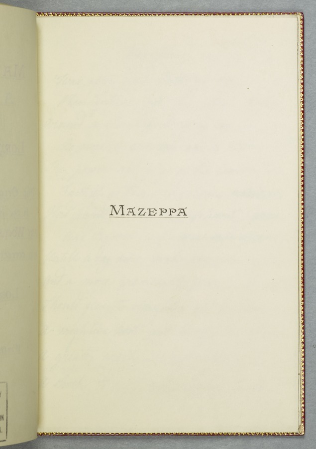 - Title: Original manuscript of Byron’s story 'Mazeppa' in Mary Shelley's hand