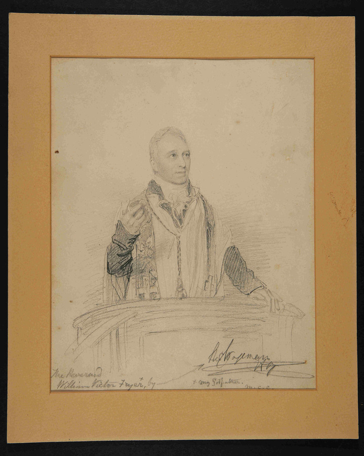 - Title: Frontal portrait of the Rev William Fryer, preaching. Subject was the godfather of Mary Cowden Clarke