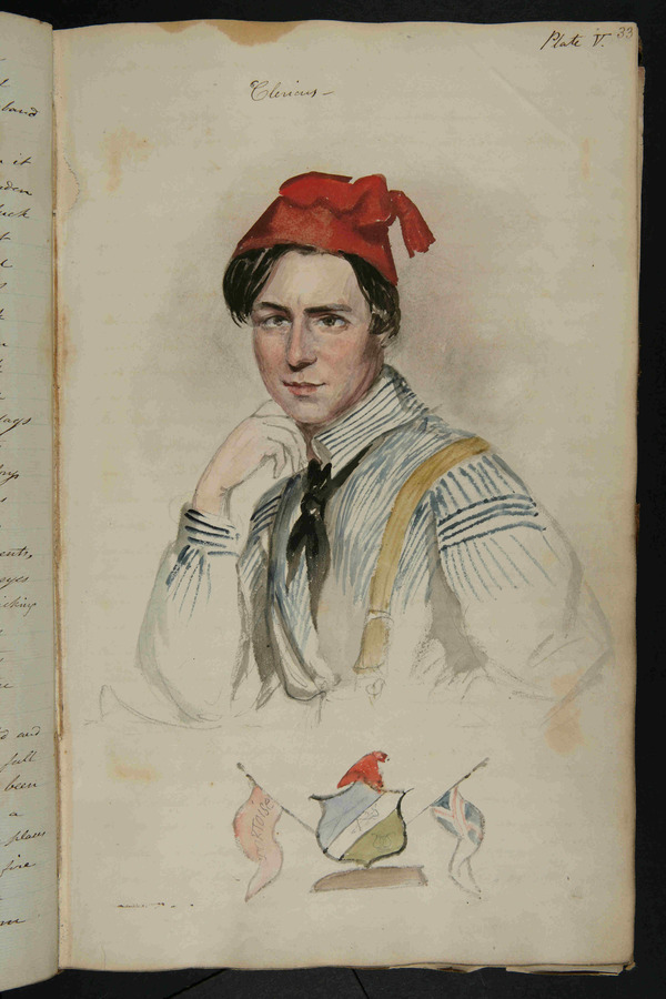 Joseph Alfred Novello as 'Clericus'. Head and shoulders portrait of Edward Novello, wearing red cap and striped shirt