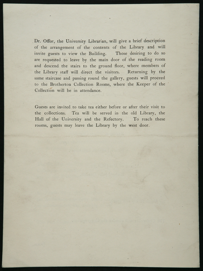 'Official Opening of the Brotherton Library of the University of Leeds' page 4 of programme