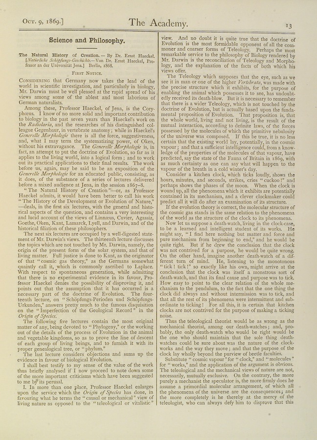 page of text, headed 'Science and Philosophy: The natural history of creation'