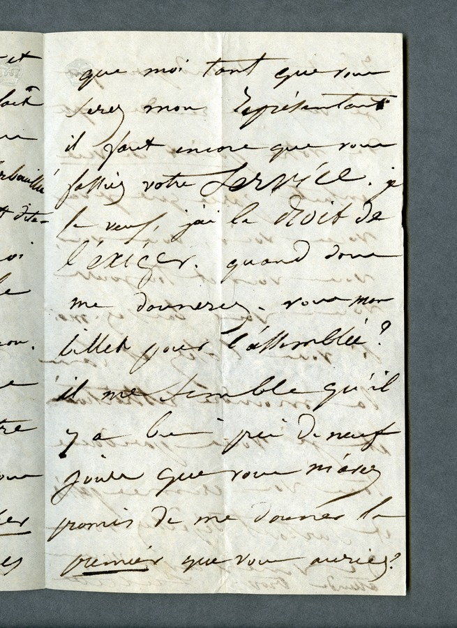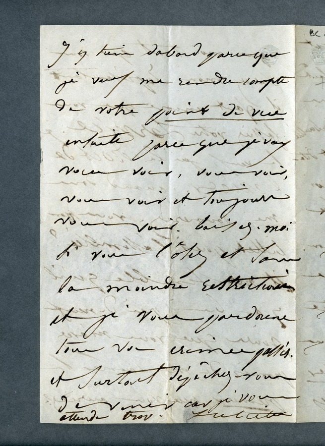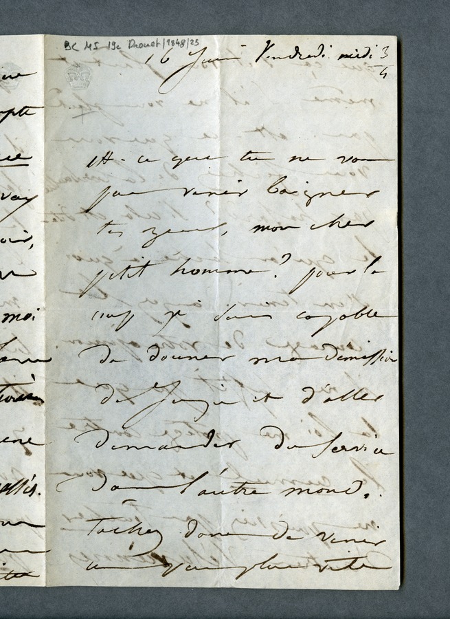 She orders Hugo to see her immediately, alluding to his recent election as a deputy. She also asks him to keep his promise to give her a ticket for the Assemby. Dated Friday, 12:45pm. c1930s typescript translation held separately.