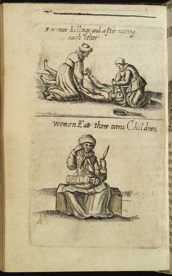 • Title: 2 images with captions 3 women killinge and after eating each other & Women eate their own children