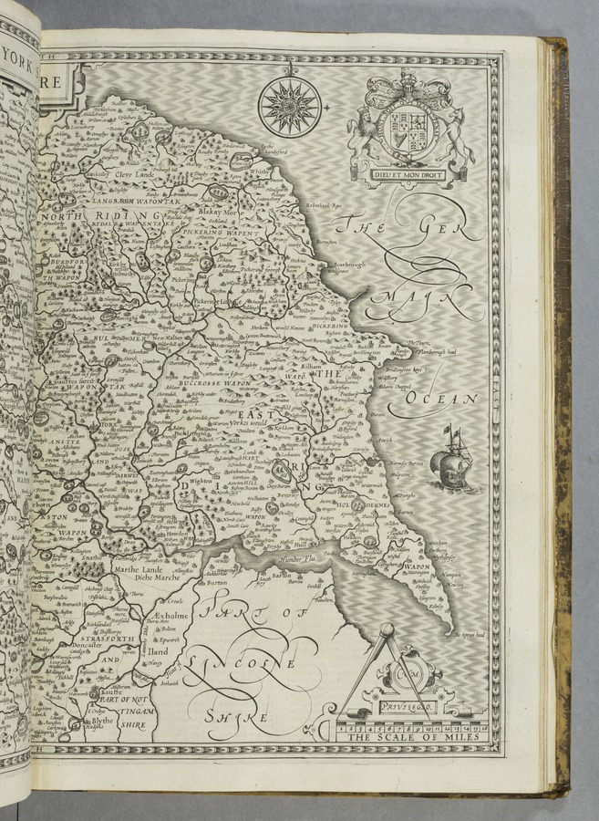 The maps are more or less unchanged from the edition of 1611, but printed with a Latin text throughout, doubtless for use on the Continent. According to Chubb this Latin edition is extremely rare and it was not until 1918 that the British Museum obtained a copy. It was printed by Thomas Snodham--Whitaker: The Harold Whitaker Collection... Univ. of Leeds, 1947, p. 19.