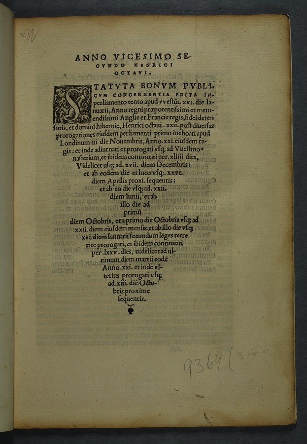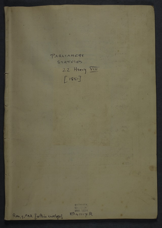 • Title: Statutes, (22) of Henry VIII [ (Anno vicesimo secundo Henrici Octavi.)