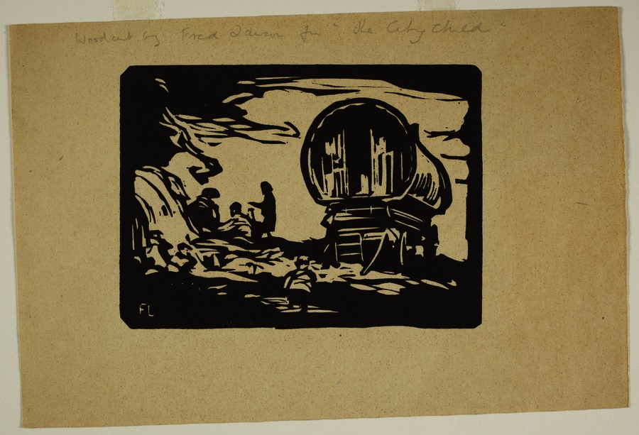 In pencil, "woodcut by Fred Lawson for, 'the City Child."