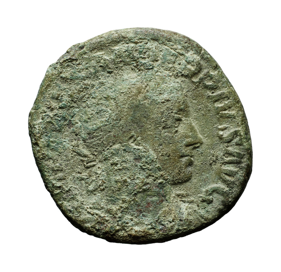 IMP ALEXANDER PIVS AVG: Bust of Severus Alexander, laureate, draped over left shoulder, right