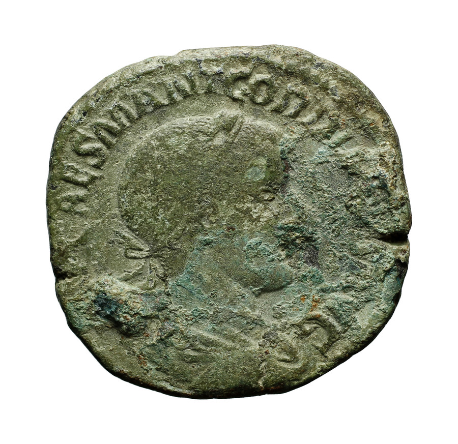 IMP CAES M ANT GORDIANVS AVG: Bust of Gordian III, laureate, draped, cuirassed, right