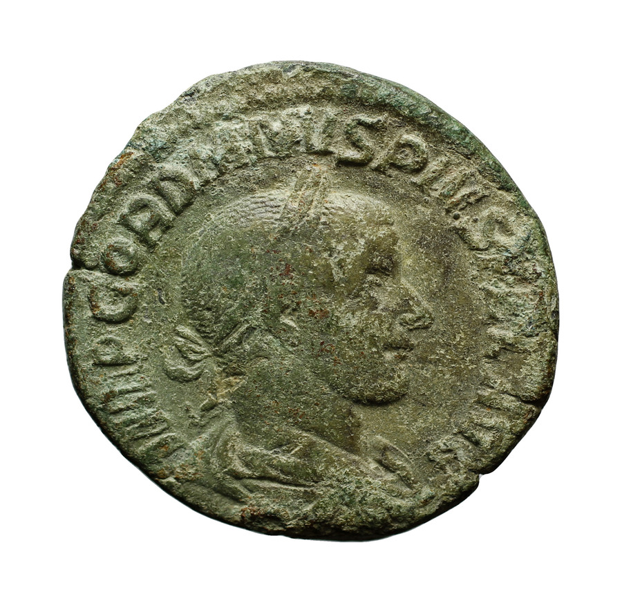 IMP GORDIANVS PIVS FEL AVG: Bust of Gordian III, laureate, draped, cuirassed, right