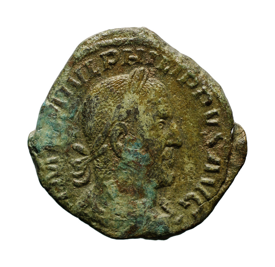 IMP M IVL PHILIPPVS AVG: Bust of Philip the Arab, laureate, draped, cuirassed, right