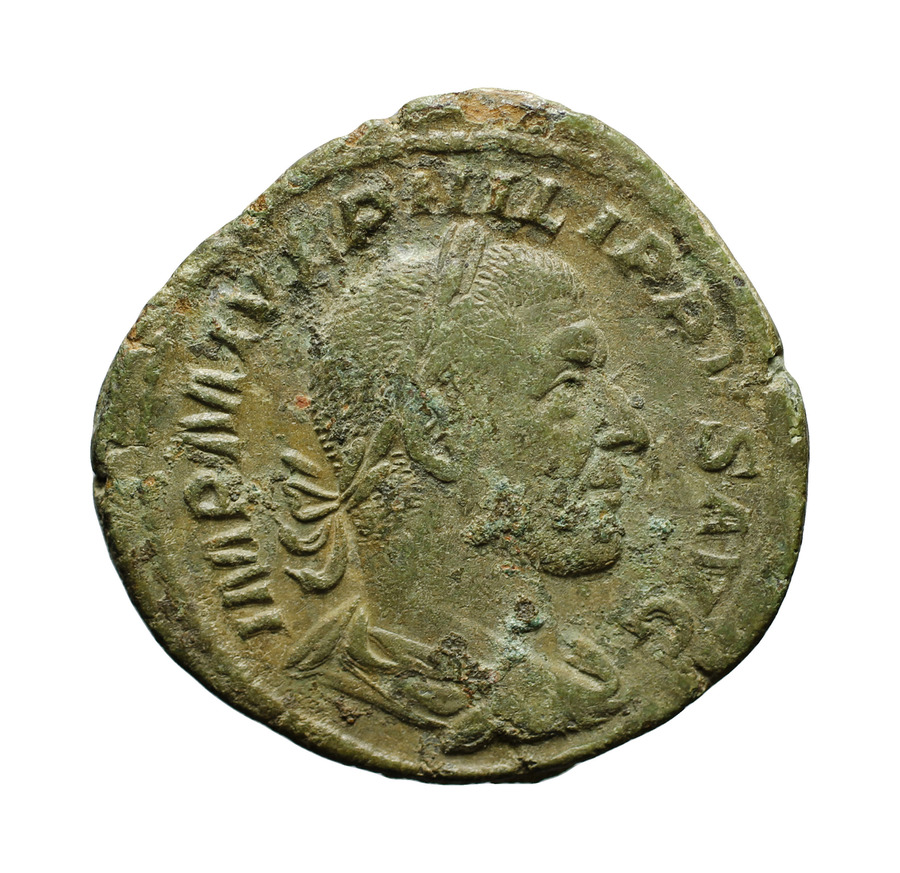 IMP M IVL PHILIPPVS AVG: Bust of Philip the Arab, laureate, draped, cuirassed, right