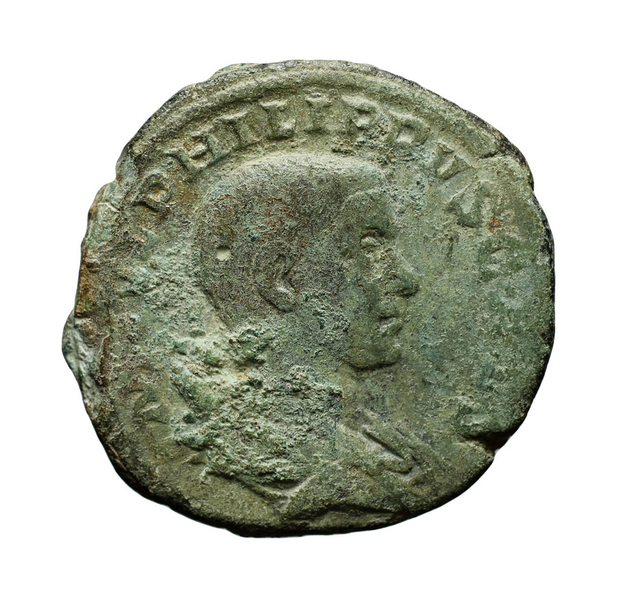 M IVL PHILIPPVS CAES: Bust of Philip II, bare-headed, draped, left | Bust of Philip II, bare-headed, draped, right