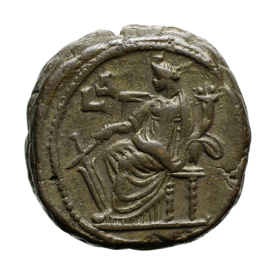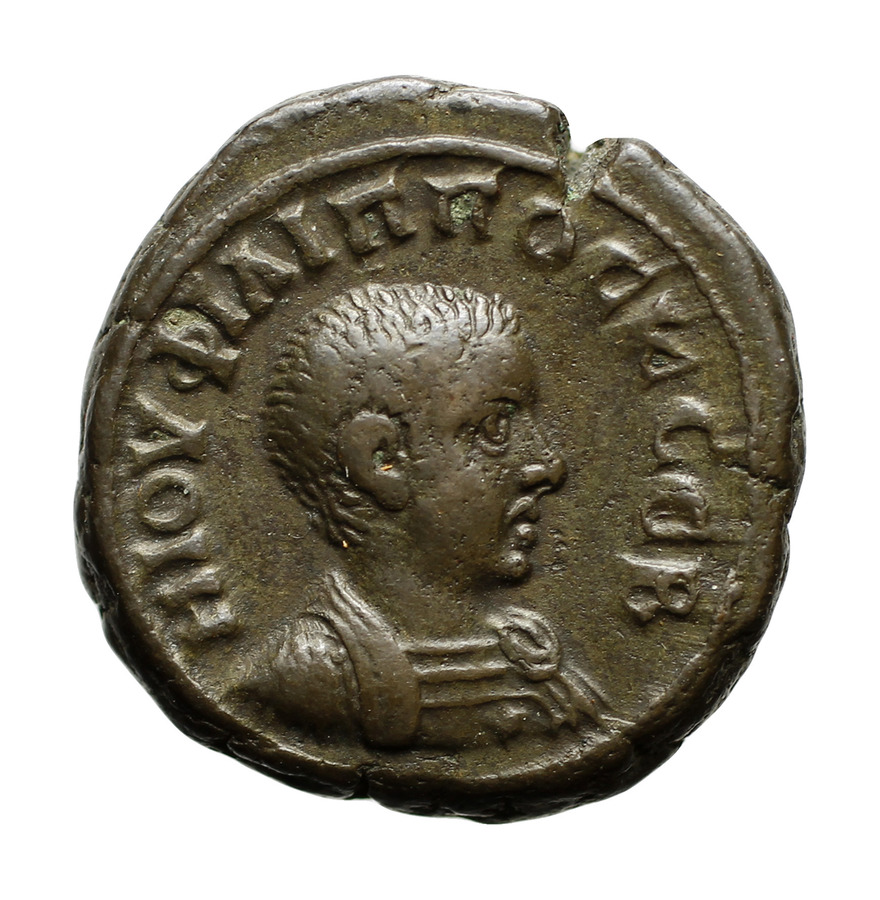 bare-headed and cuirassed bust of Philip II, r., seen from front, with gorgoneion