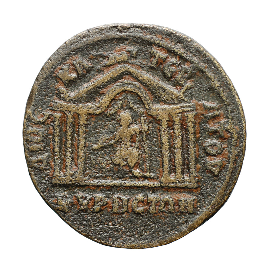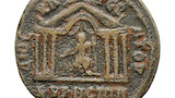 laureate, draped and cuirassed bust of Philip II, r., seen from rear