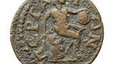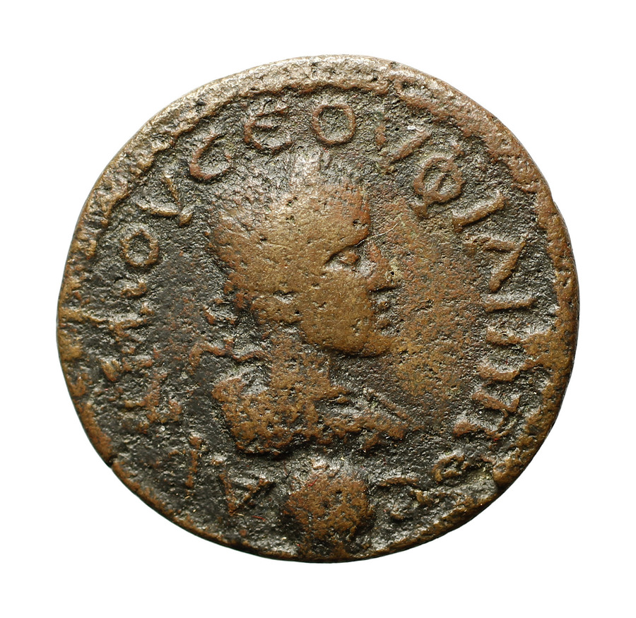 laureate, draped and cuirassed bust of Philip II, r., seen from rear; below, globe