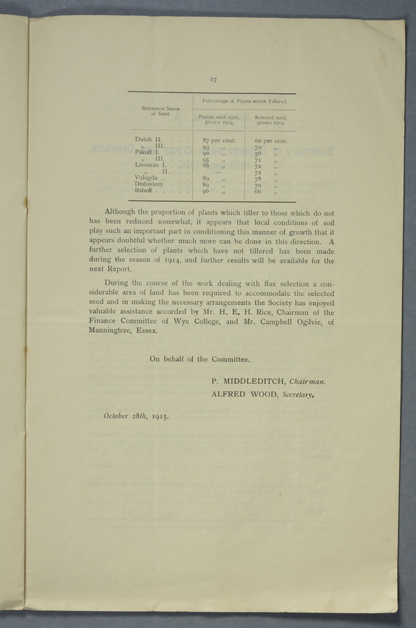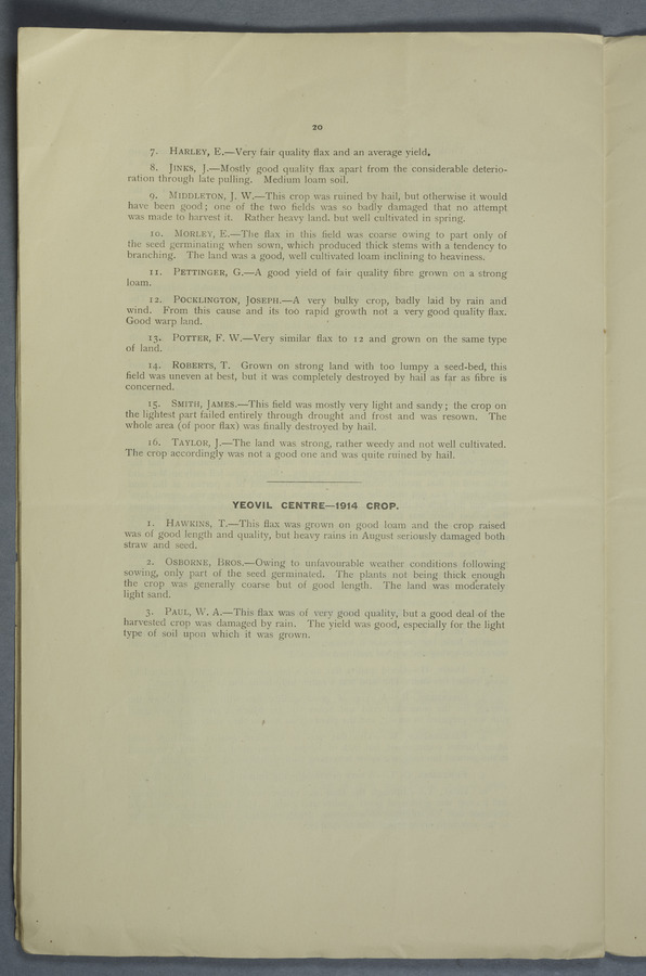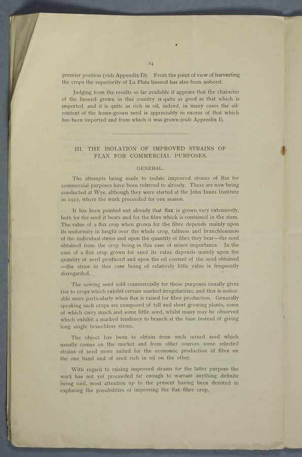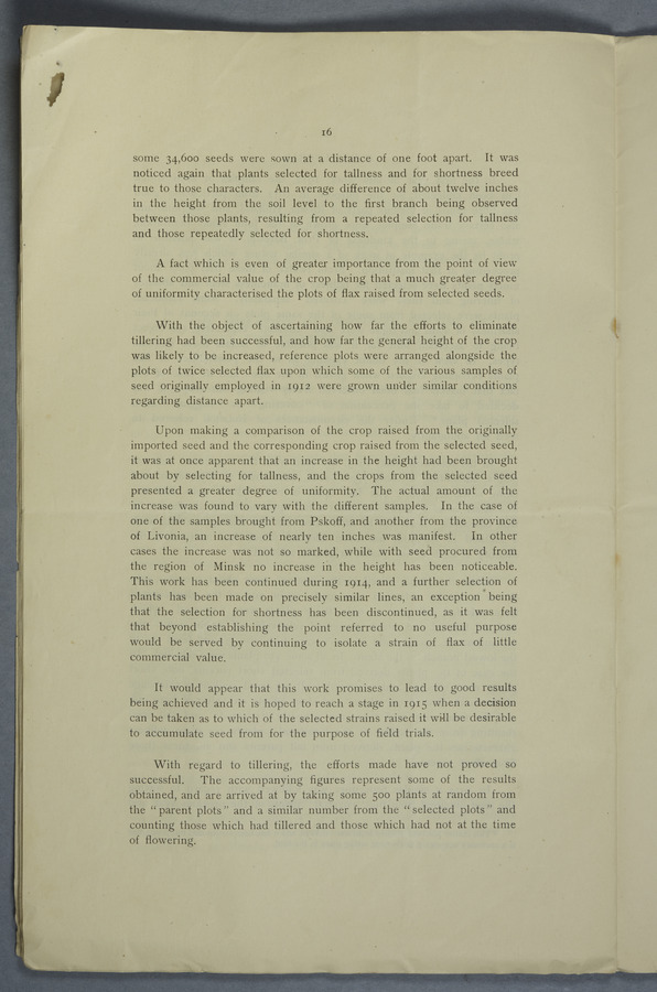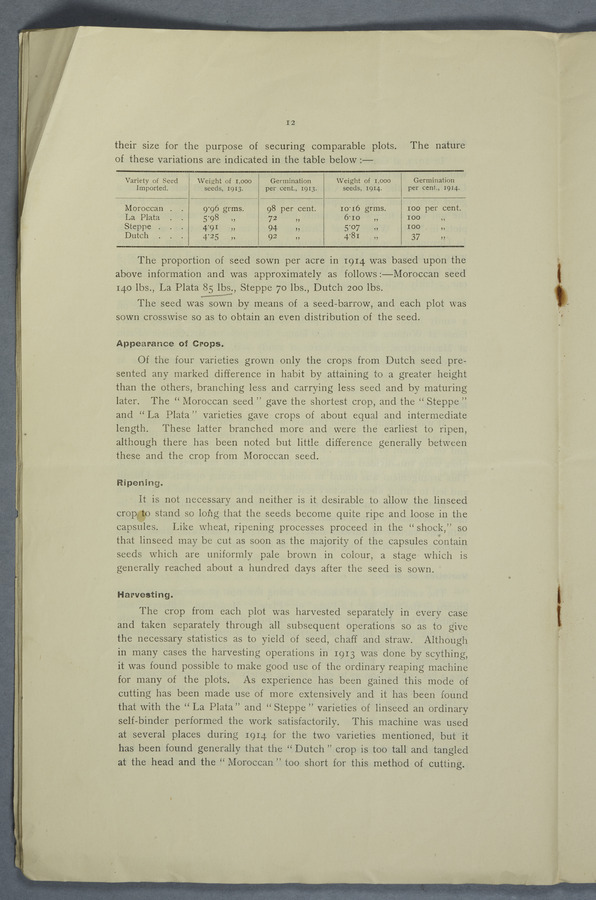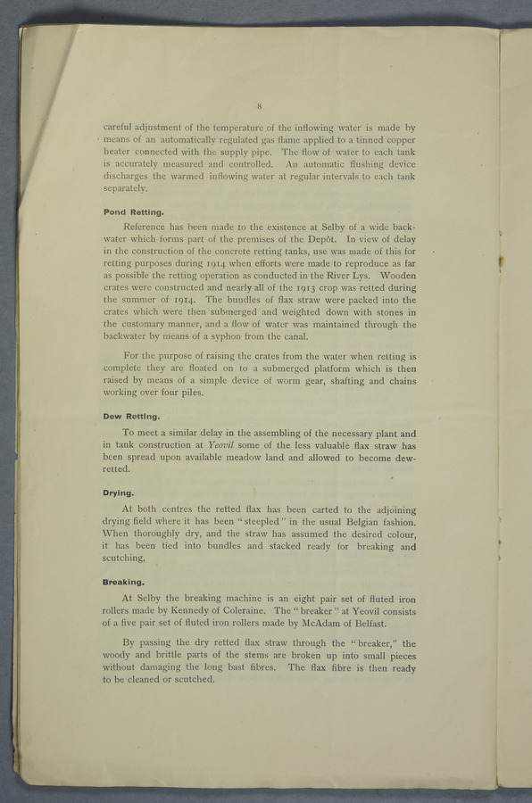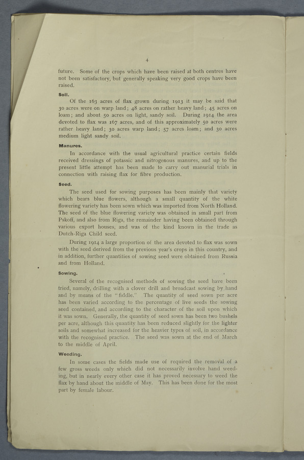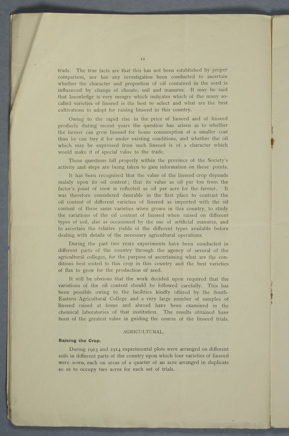 British Flax and Hemp Growers' Society. Technical & statistical report to the Board of Agriculture and Fisheries, March 1915. London, [(?)1916]. Rubber stamp of DATI, Statistics & Intelligence Branch, Library on t.p., together with date '1 Jun. 1916'.