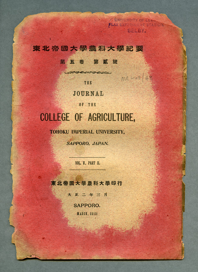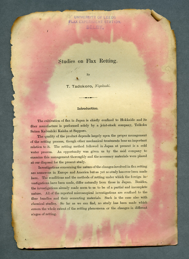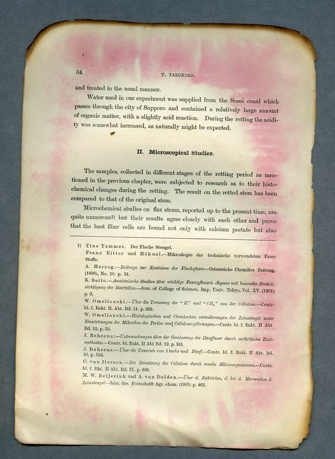 Tadokoro ( Tetsutaro ) Studies on flax retting, Journal of the College of Agriculture ... Sapporo, vol. V, pt. ii (1913), pp. 31-72.