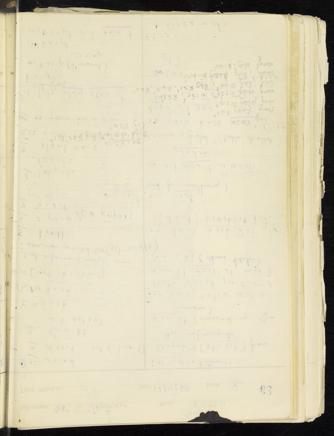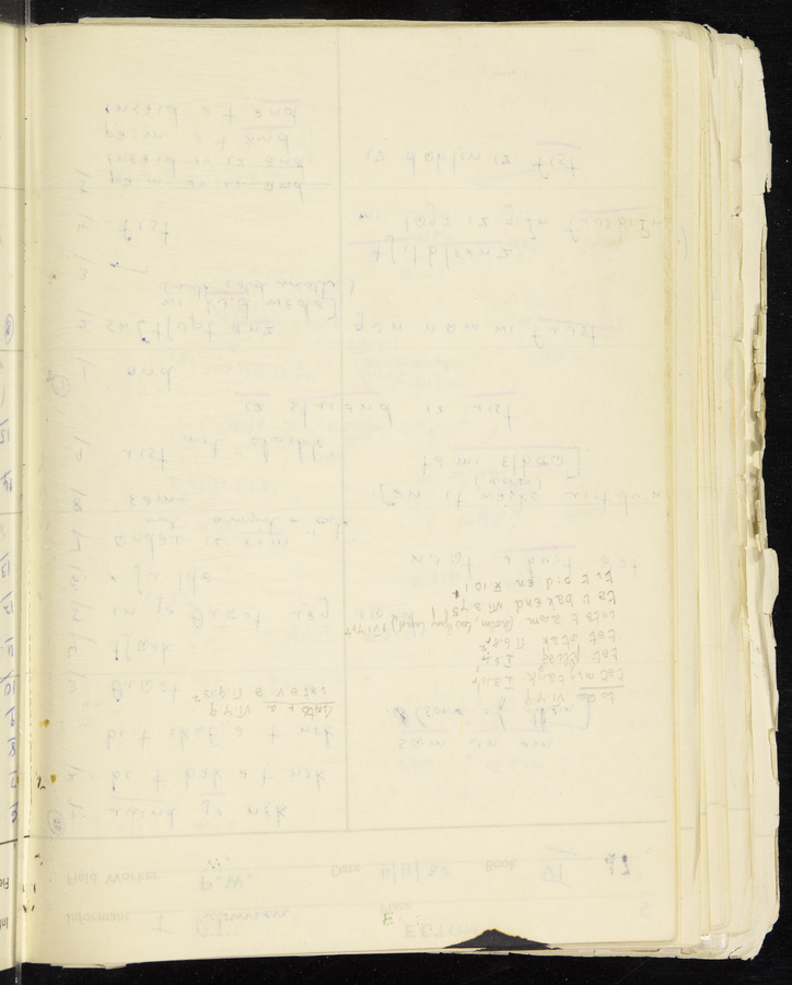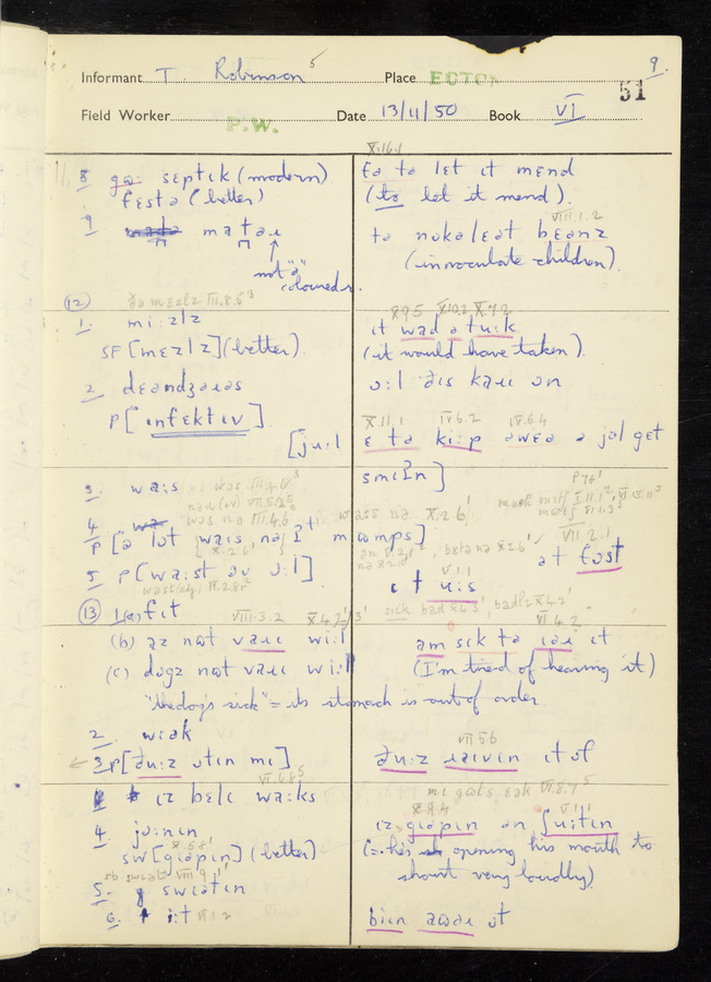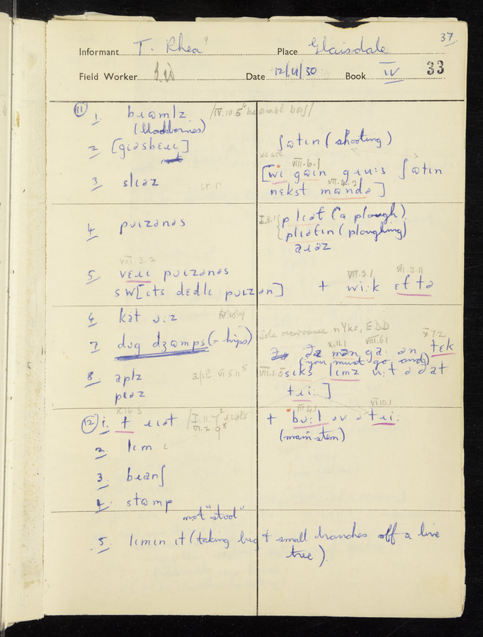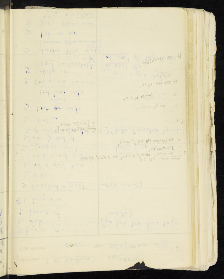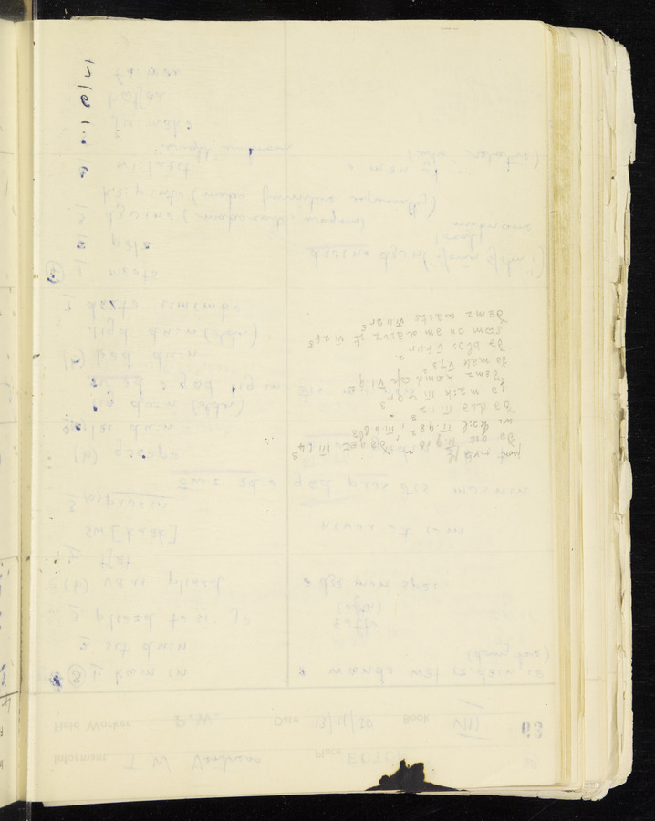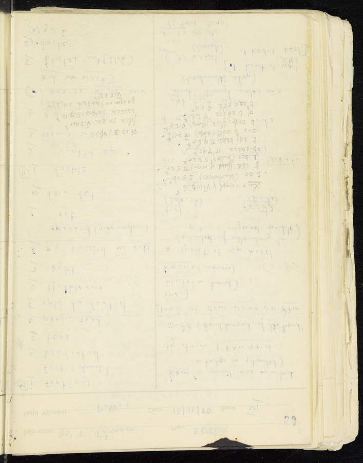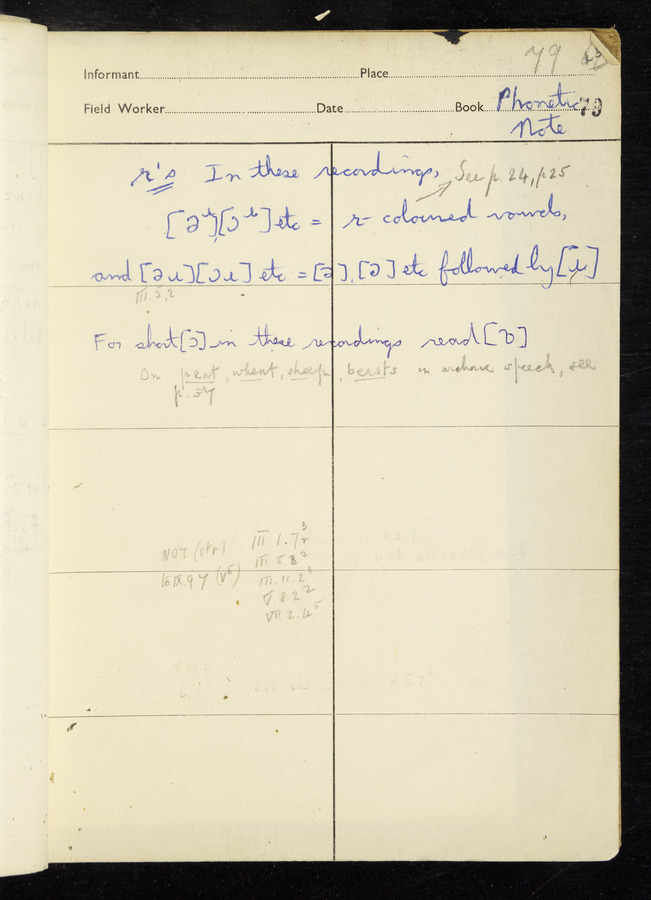 Response book recording the answers given by informants during the Survey of English Dialect. It includes 9 sections that cover a range of topics relating to work, domestic and social life. Answers are recorded in the International Phonetic Alphabet.