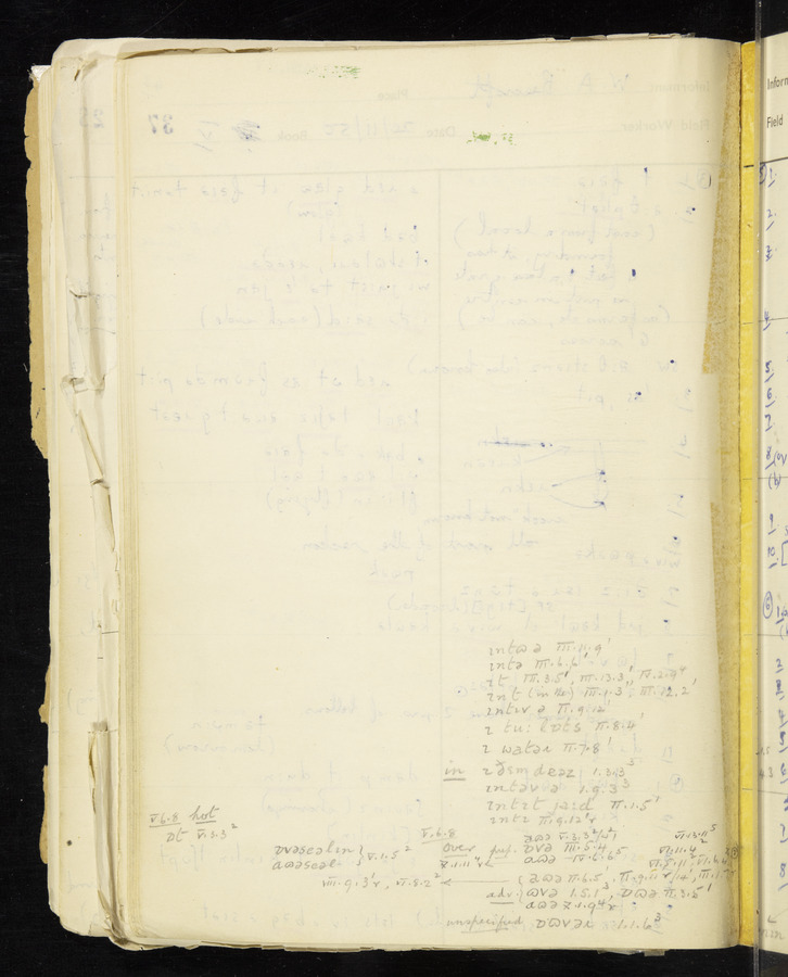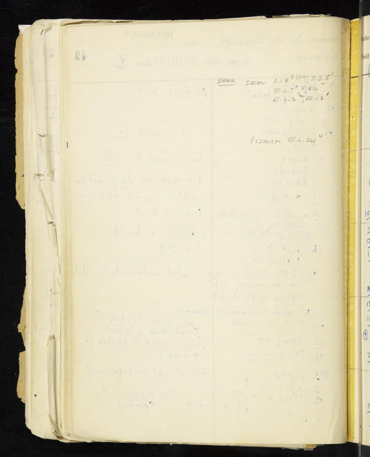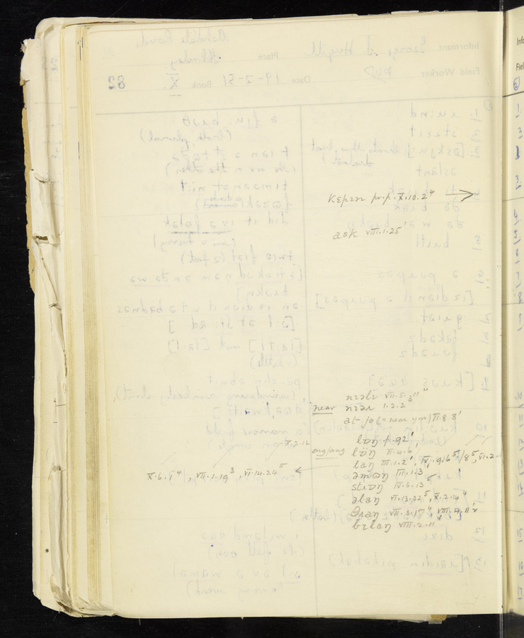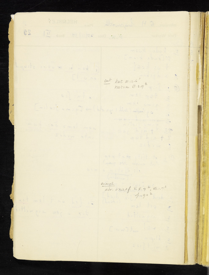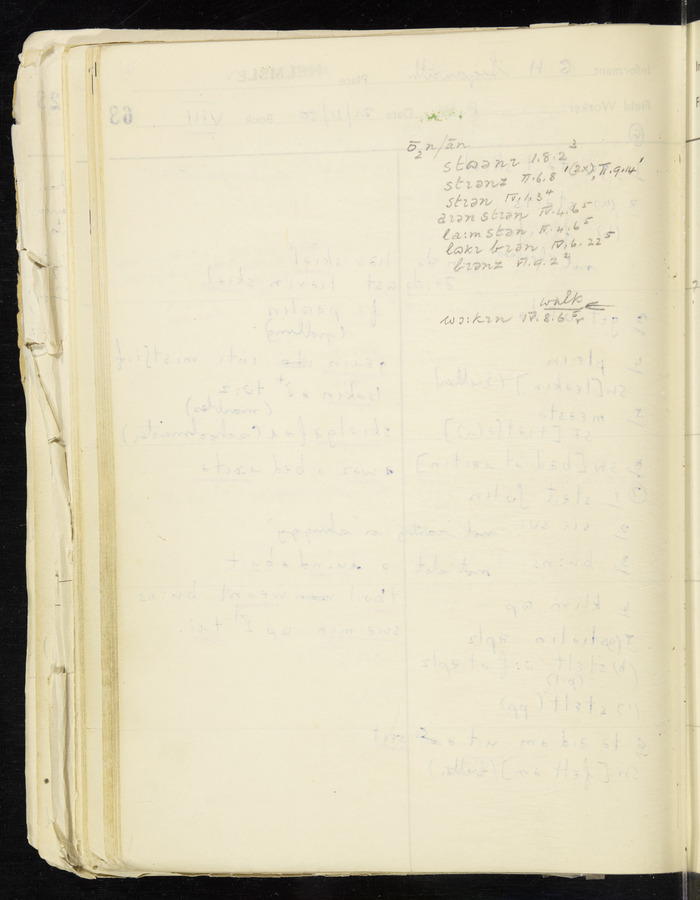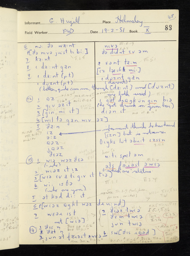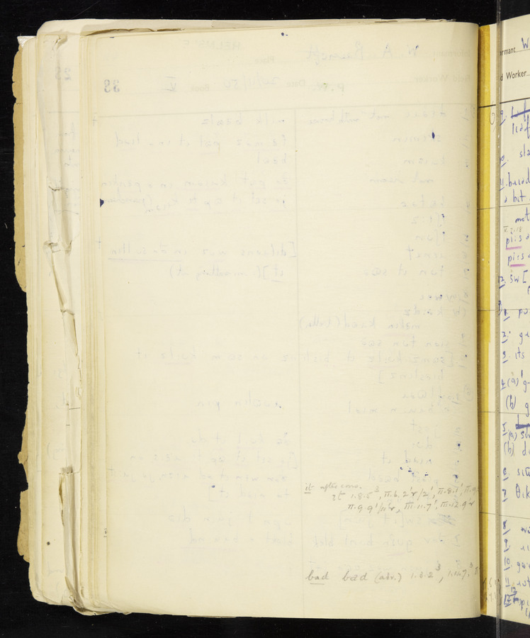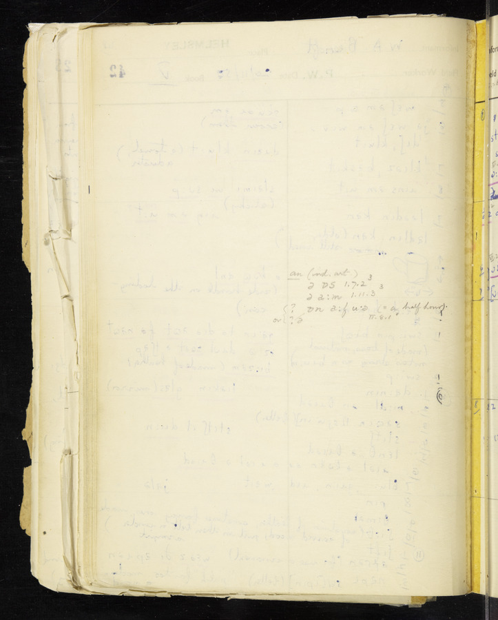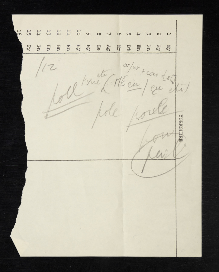 Response book recording the answers given by informants during the Survey of English Dialect. It includes 9 sections that cover a range of topics relating to work, domestic and social life. Answers are recorded in the International Phonetic Alphabet.