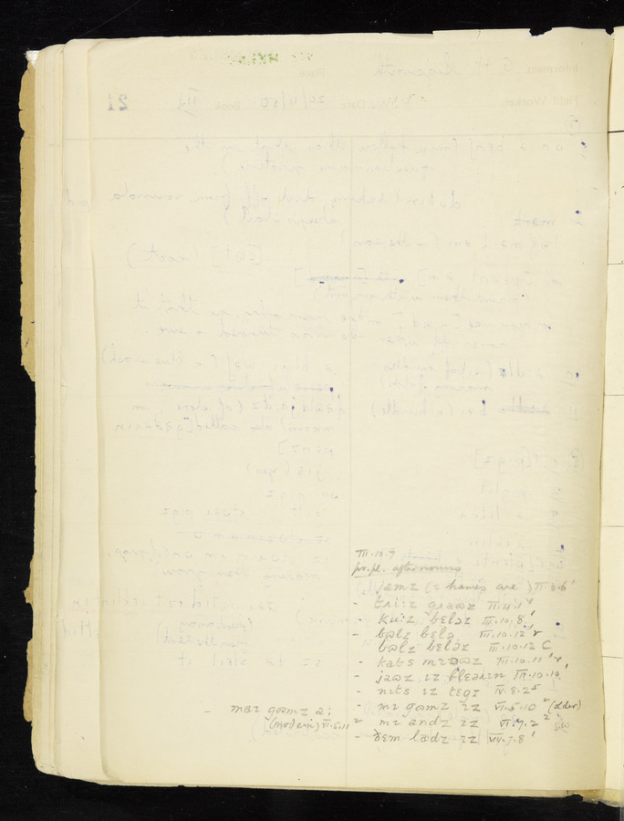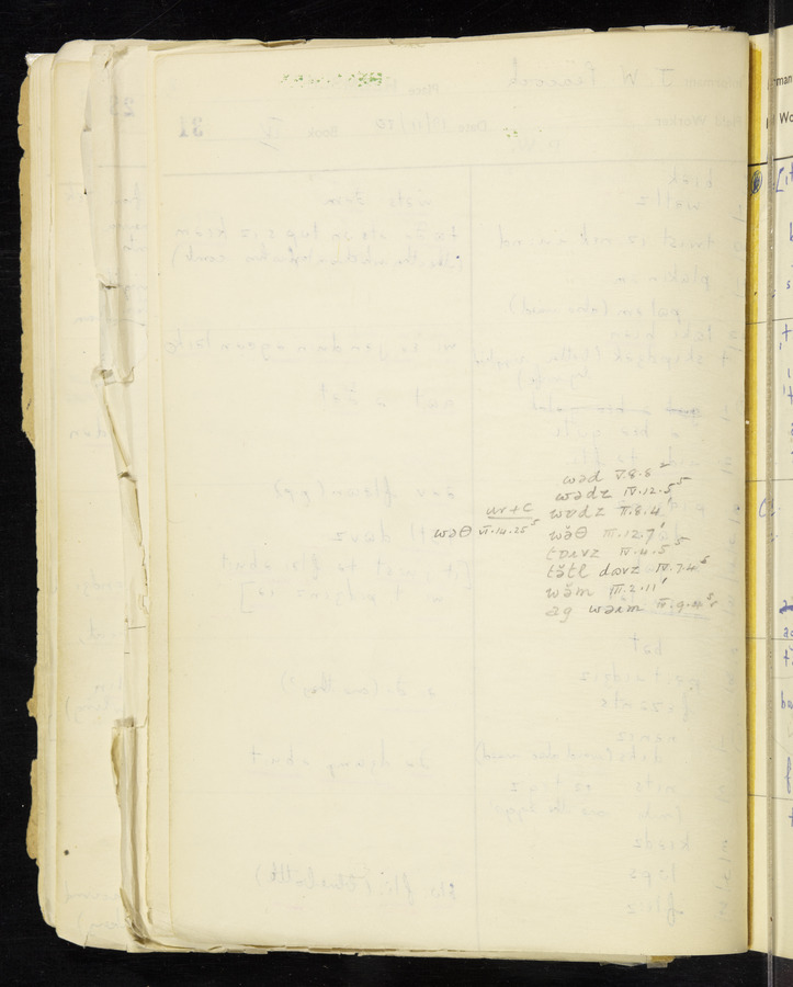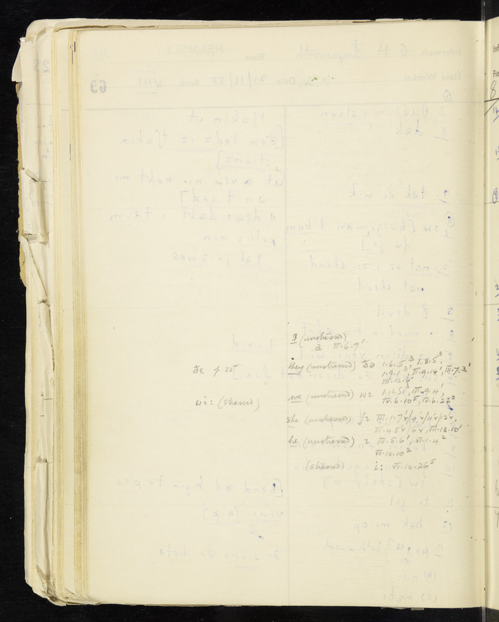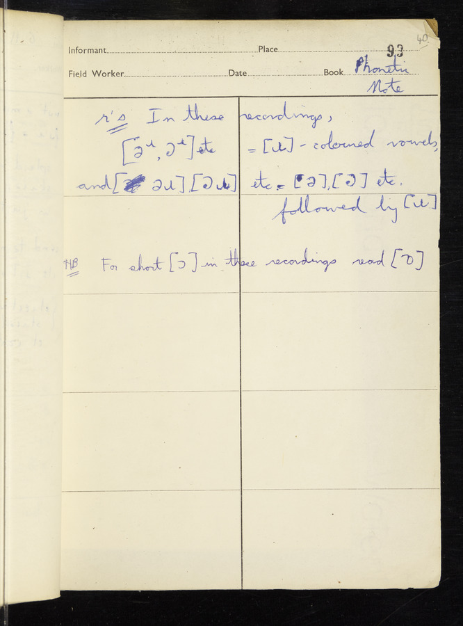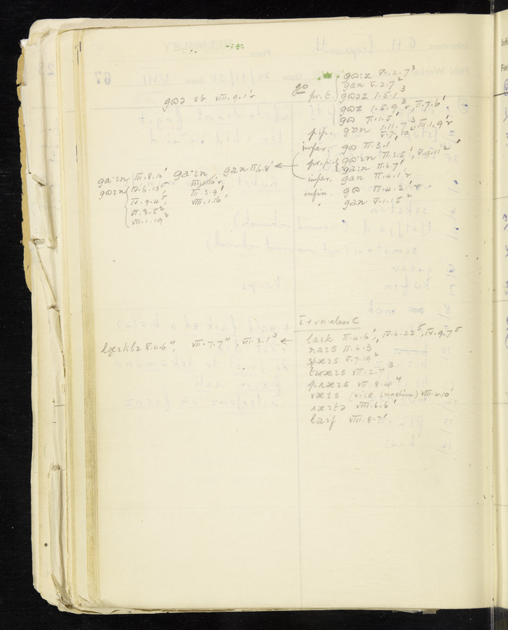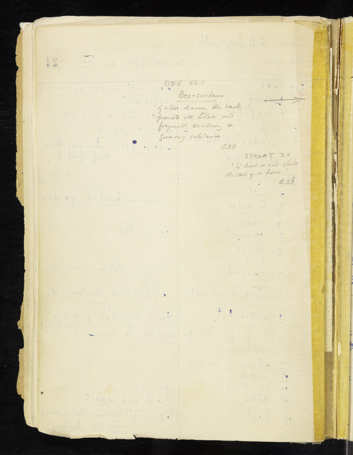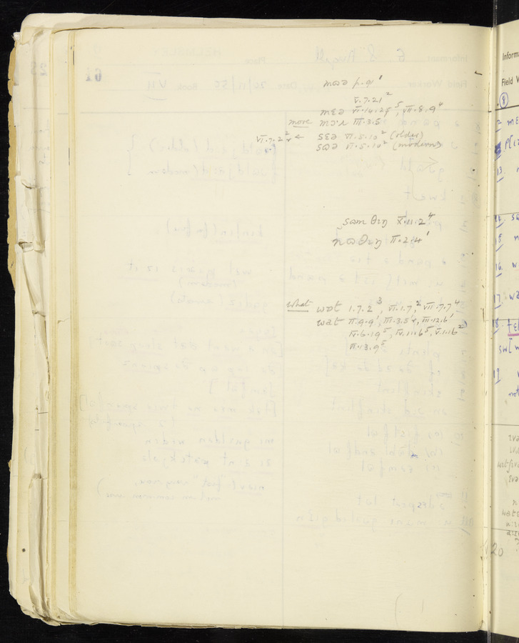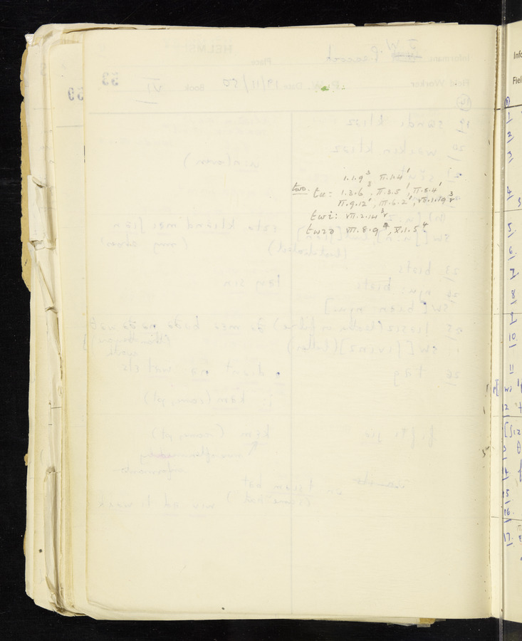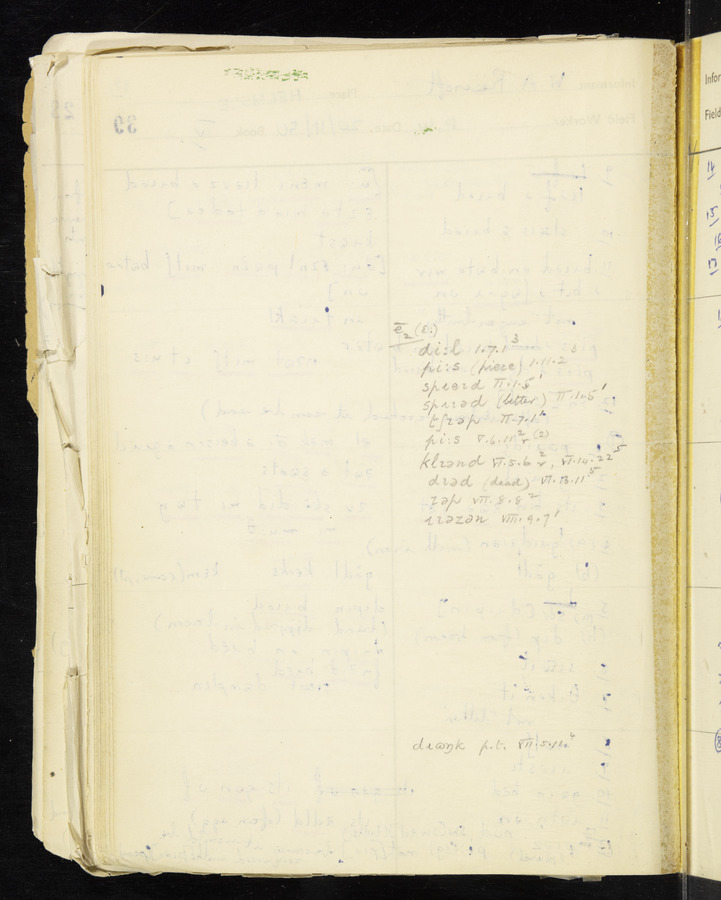 Response book recording the answers given by informants during the Survey of English Dialect. It includes 9 sections that cover a range of topics relating to work, domestic and social life. Answers are recorded in the International Phonetic Alphabet.