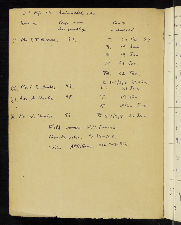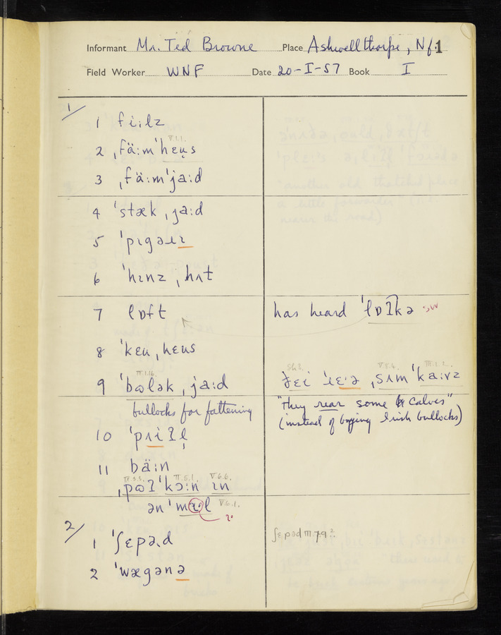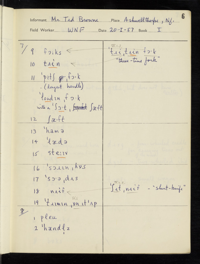 The answers of informant Edward T. Browne recorded by fieldworker W. Nelson Francis in the International Phonetic Alphabet.