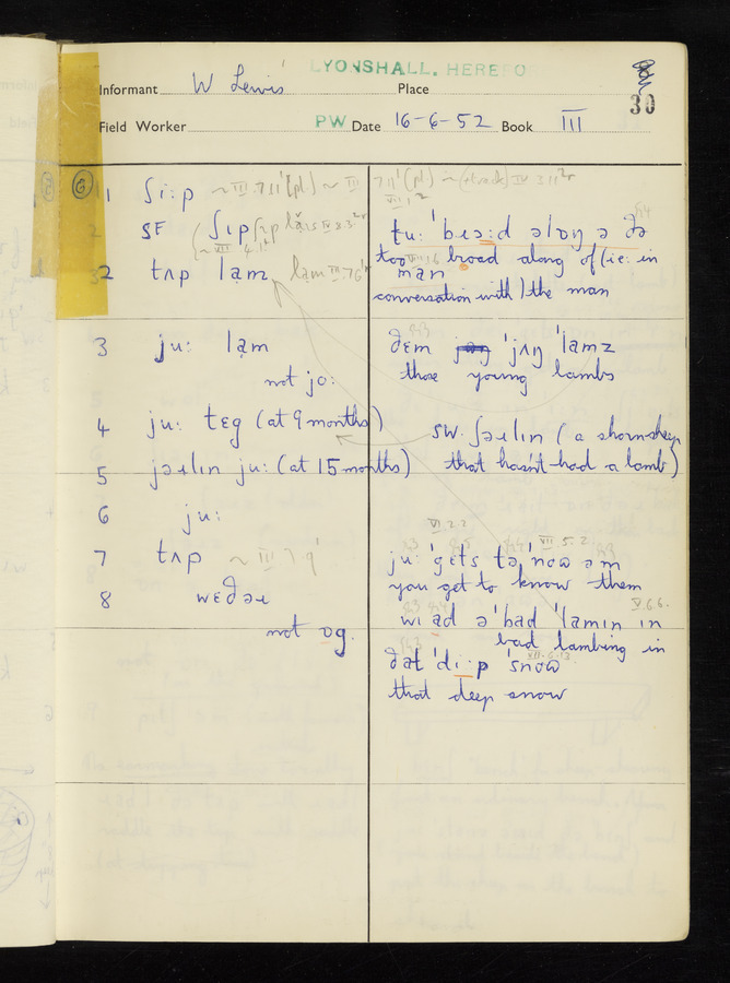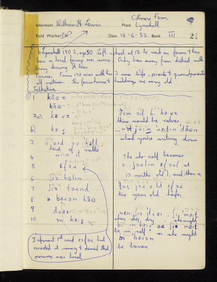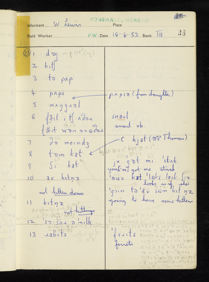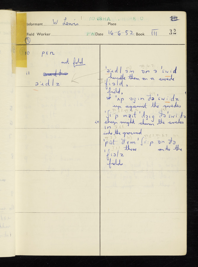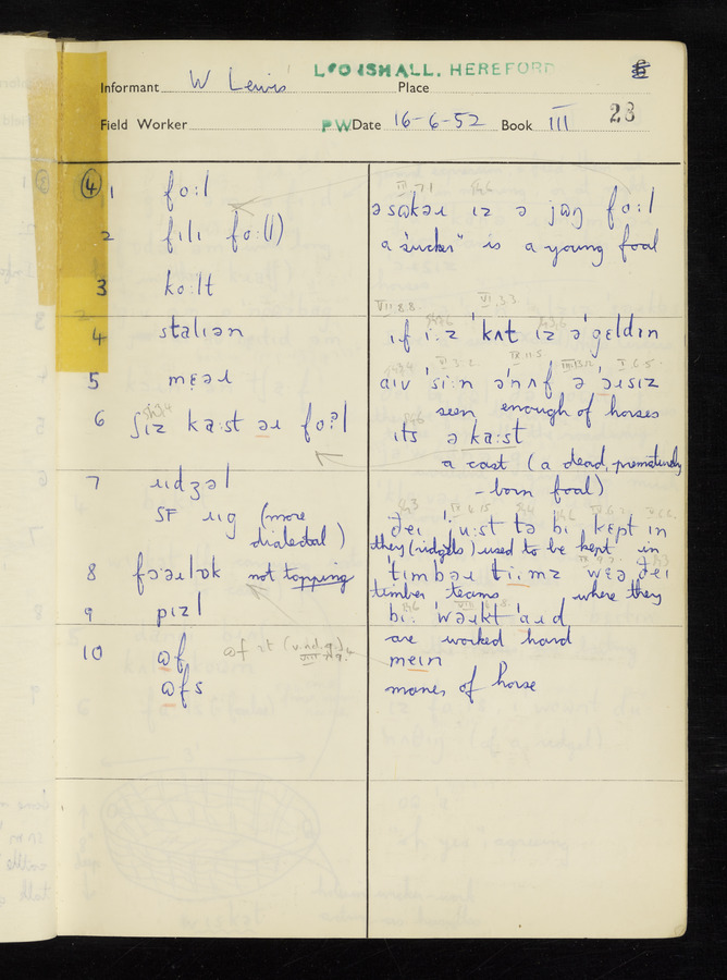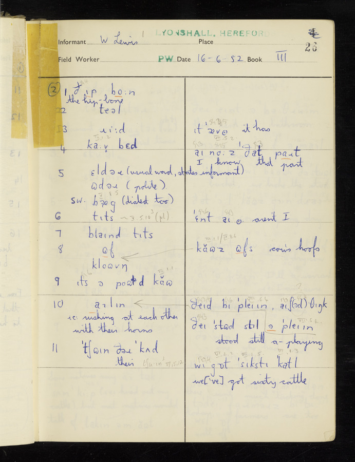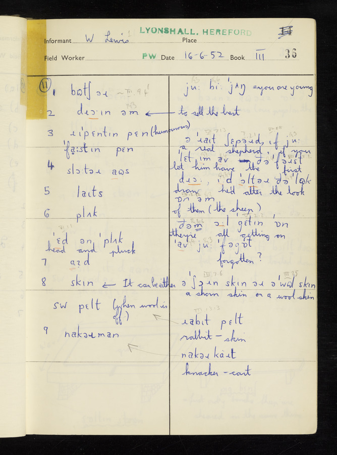 The answers of informant William Lewis recorded by fieldworker Peter Wright in the International Phonetic Alphabet.