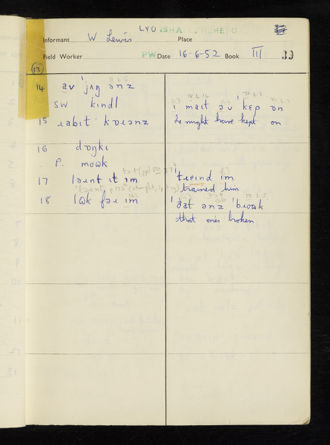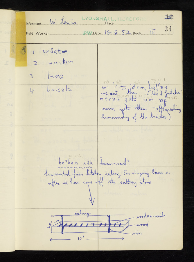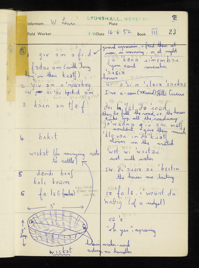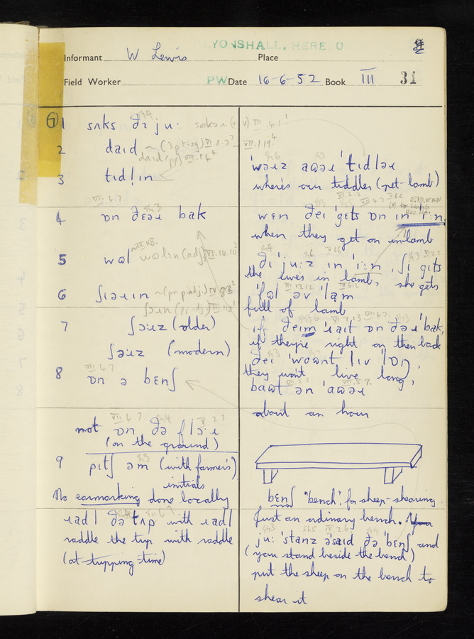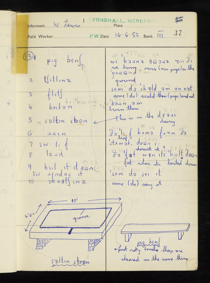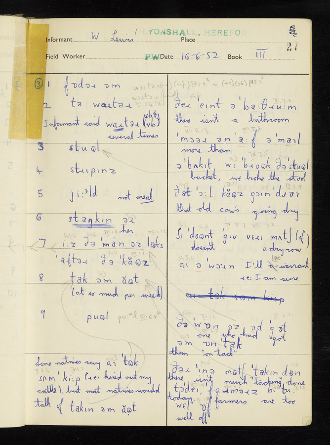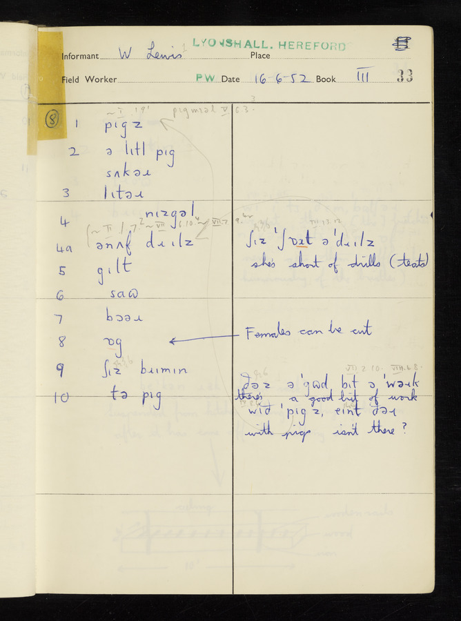 The answers of informant William Lewis recorded by fieldworker Peter Wright in the International Phonetic Alphabet.