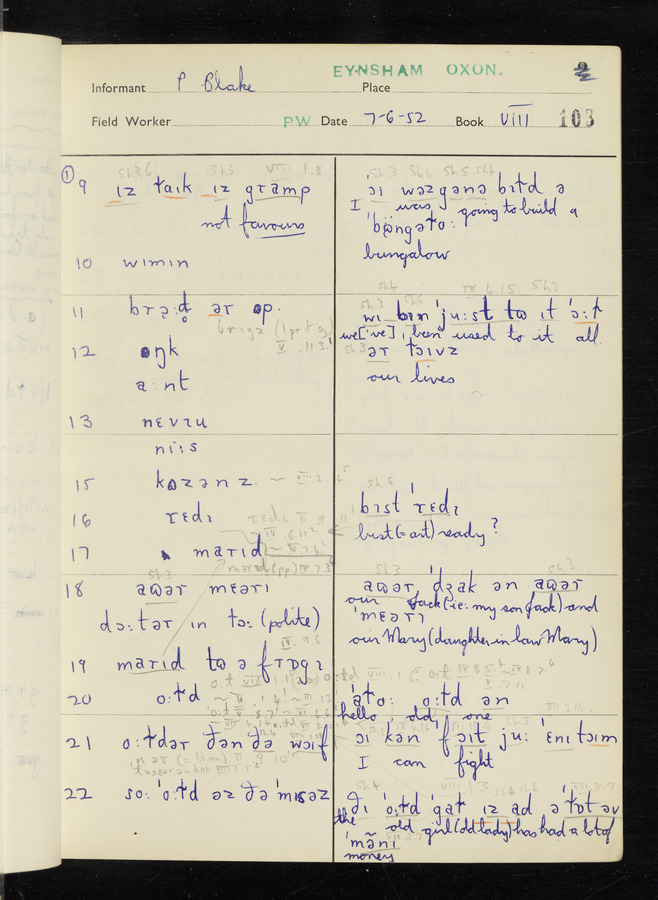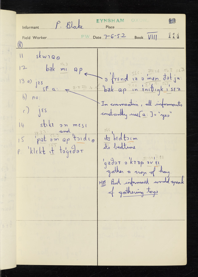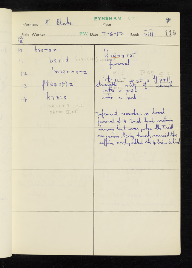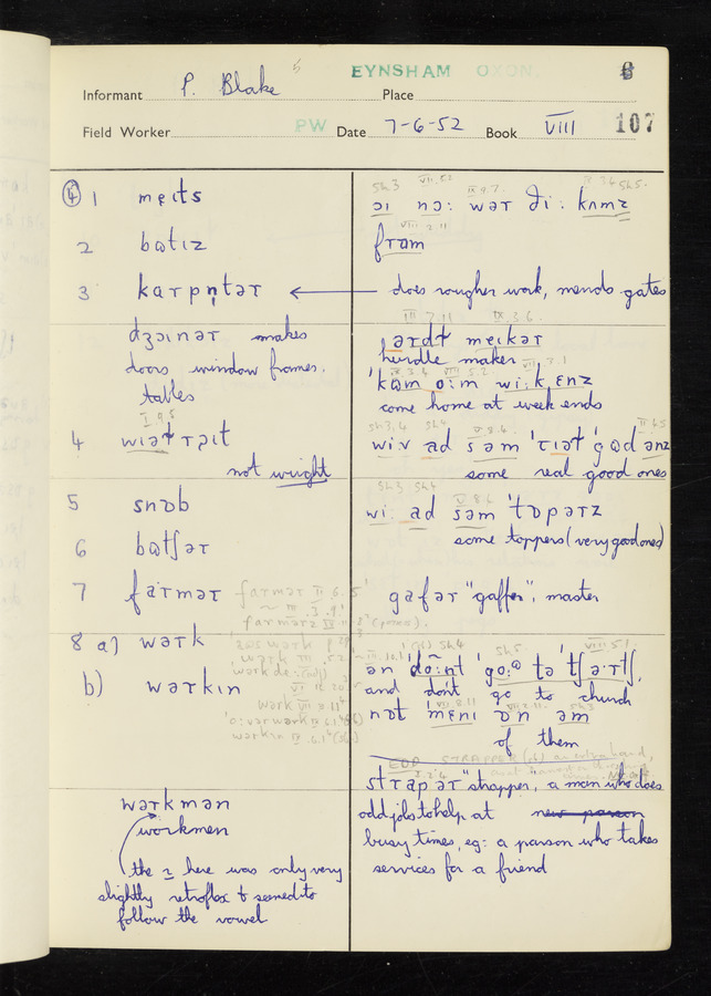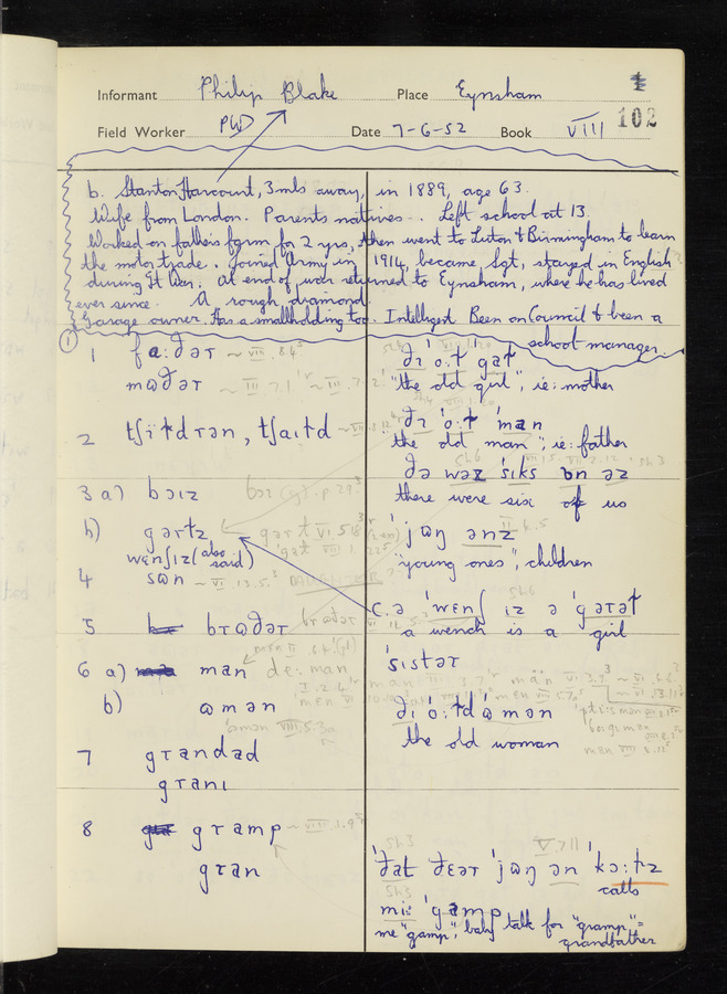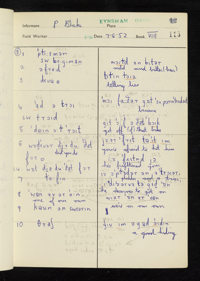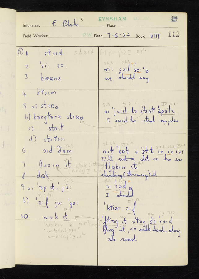 The answers of informant Philip Blake recorded by fieldworker Peter Wright in the International Phonetic Alphabet.