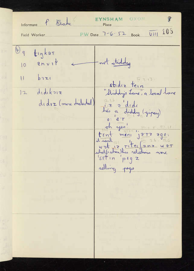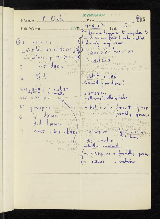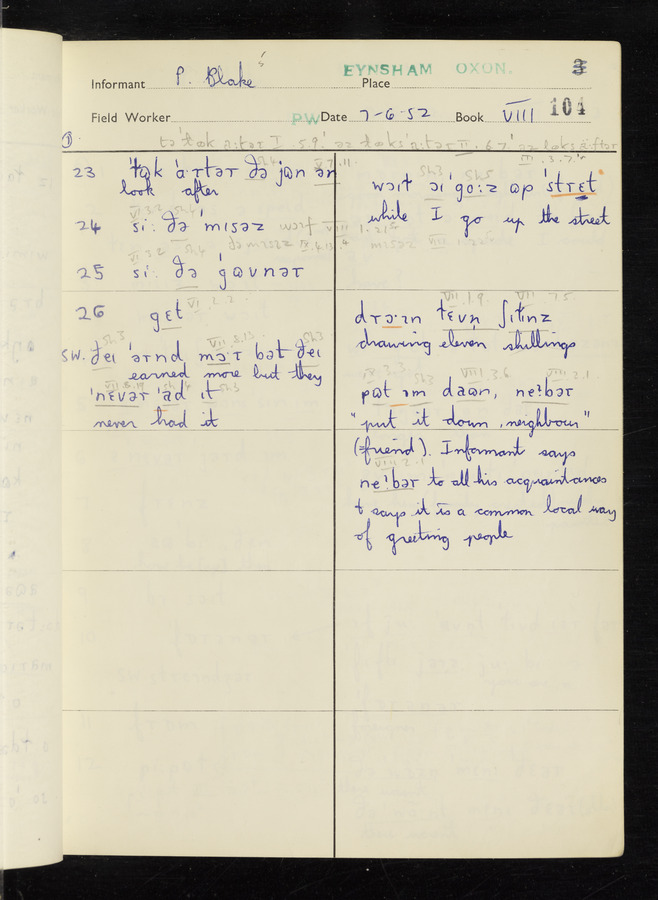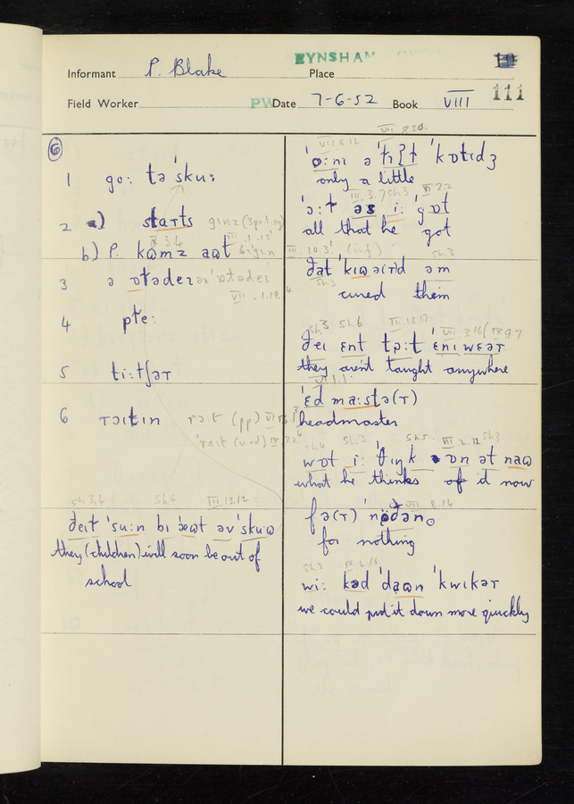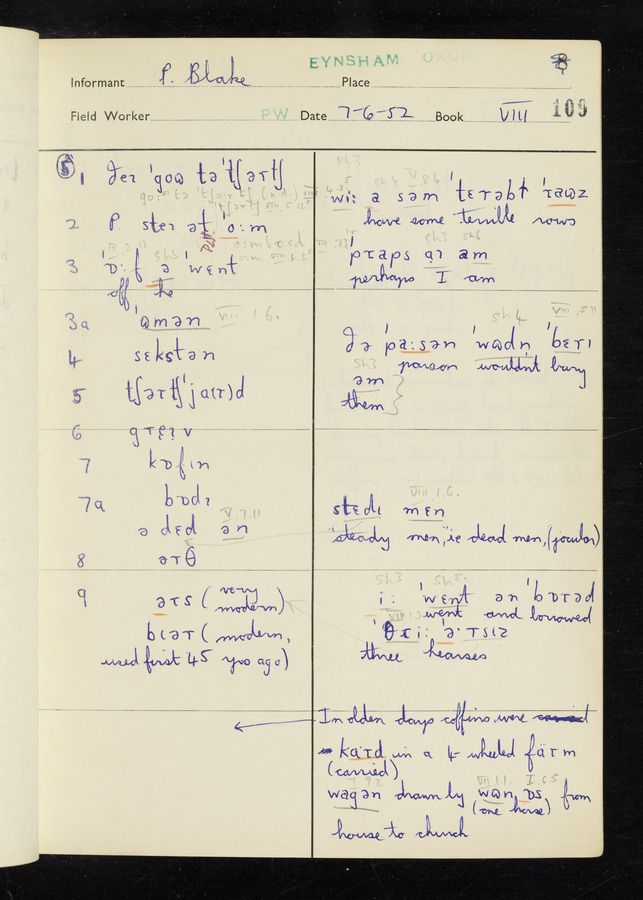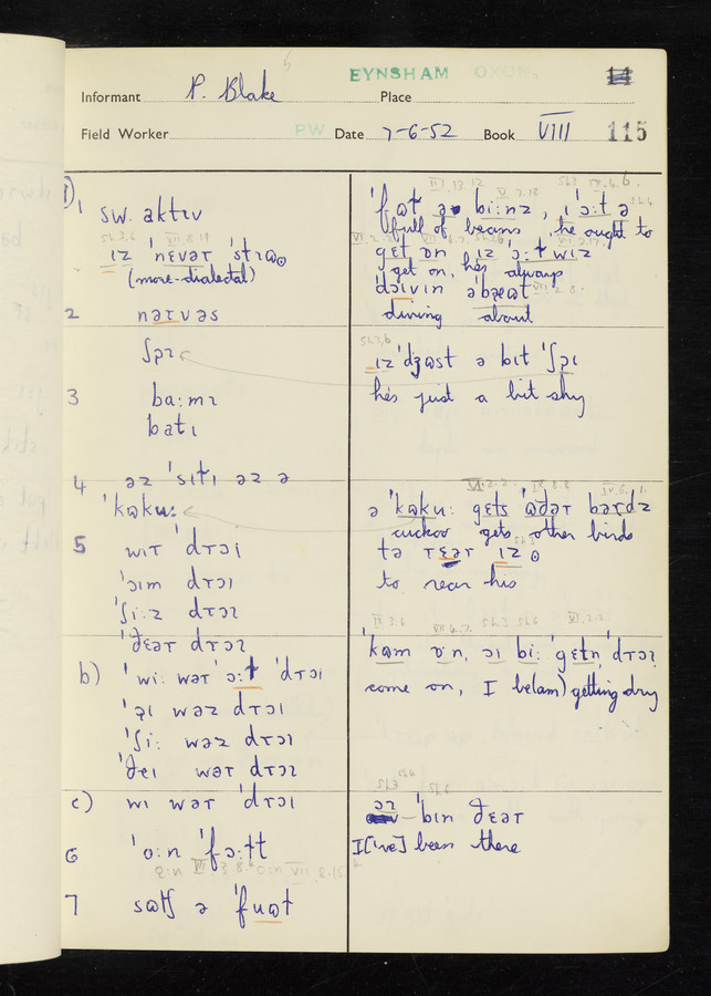 The answers of informant Philip Blake recorded by fieldworker Peter Wright in the International Phonetic Alphabet.
