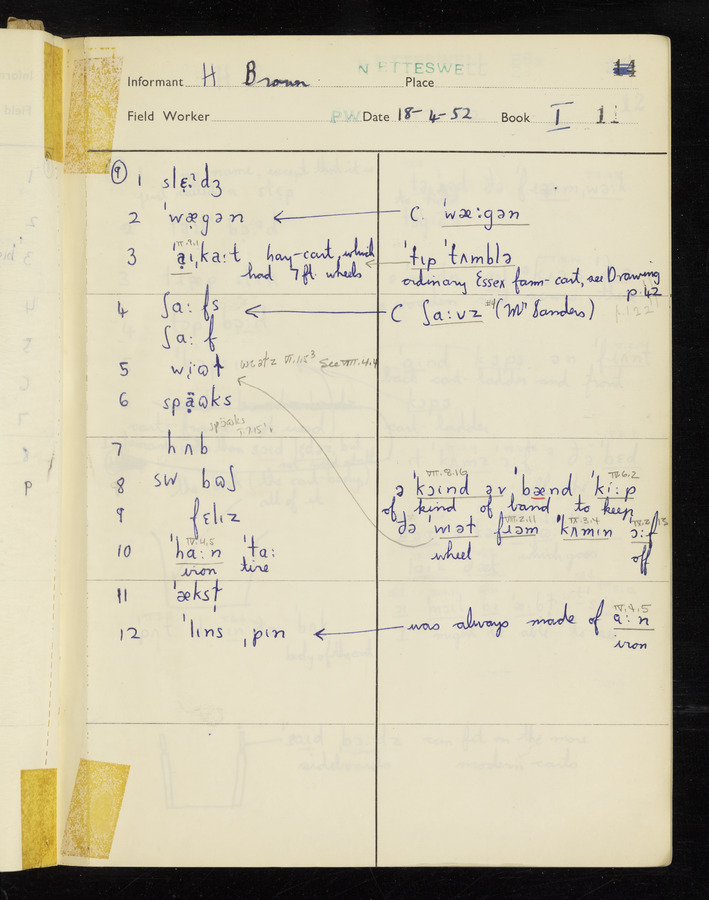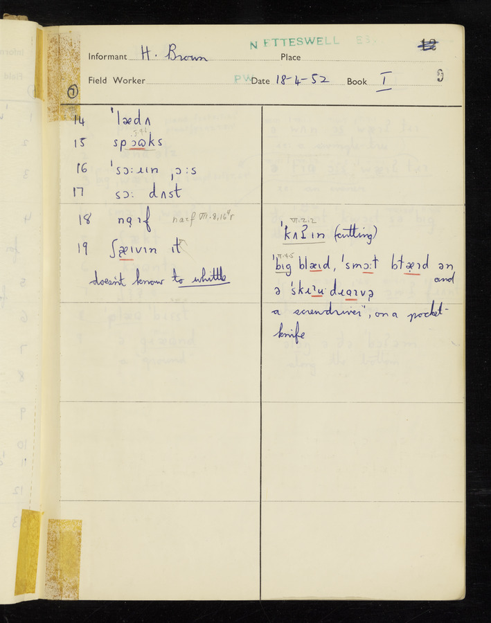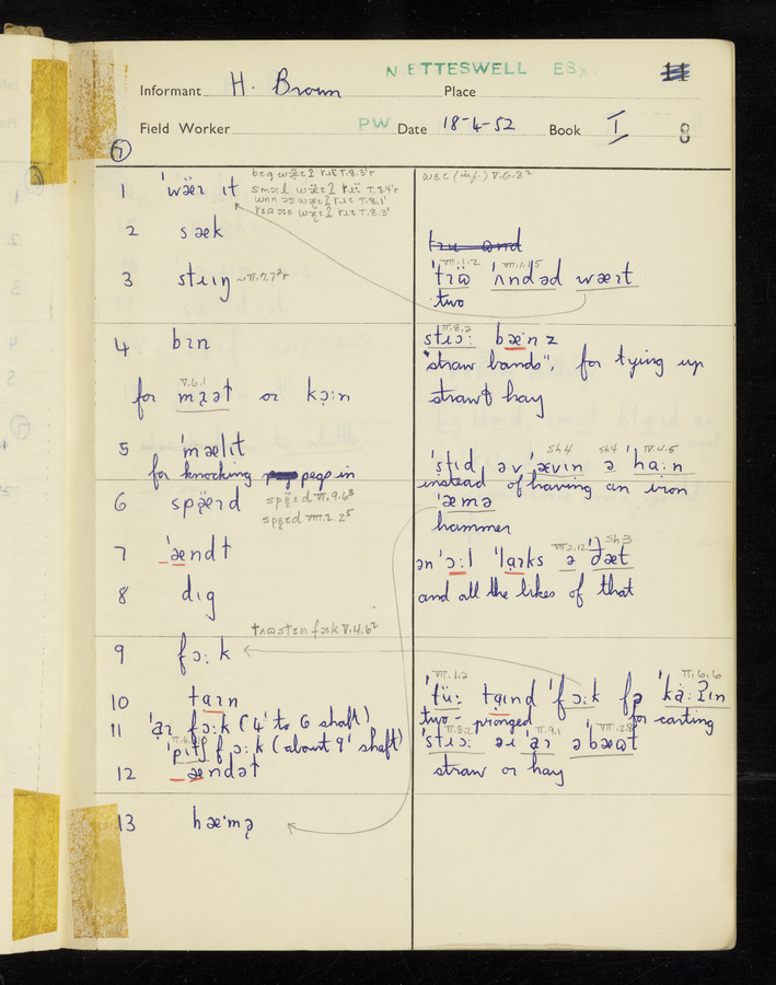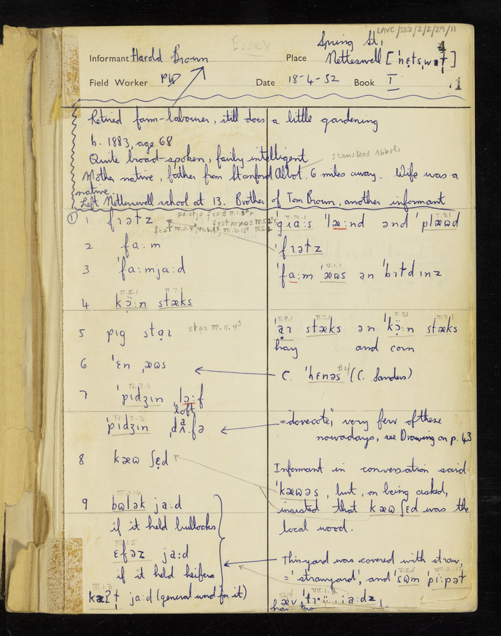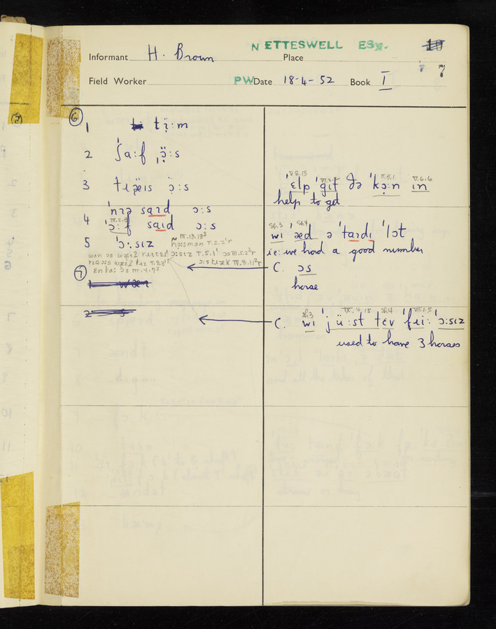 The answers of informant Harold Brown recorded by fieldworker Peter Wright in the International Phonetic Alphabet.