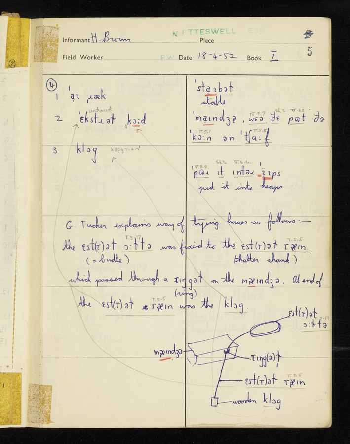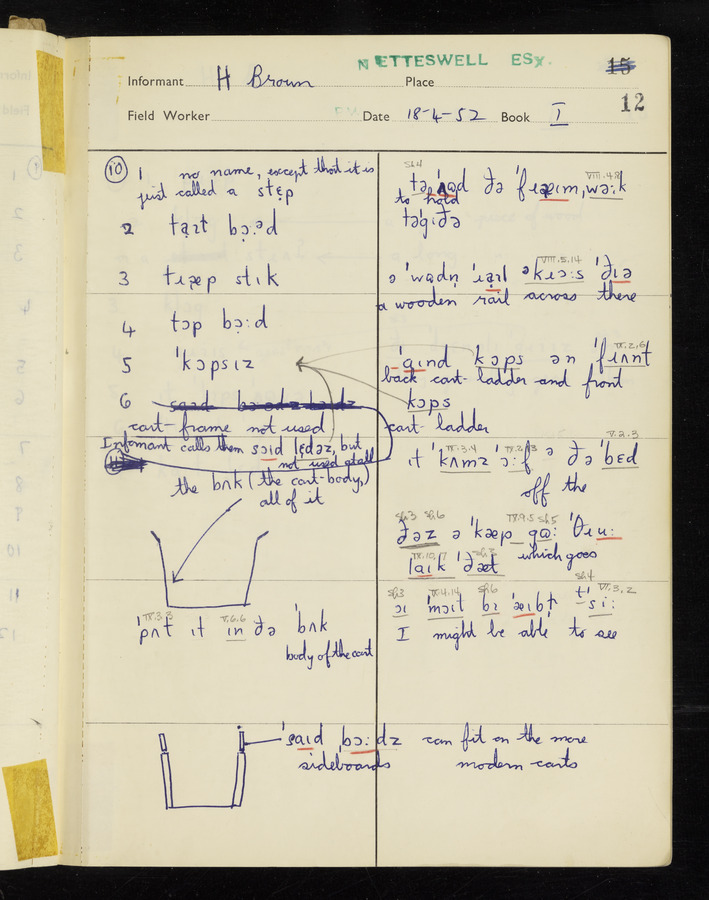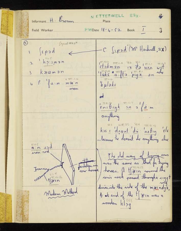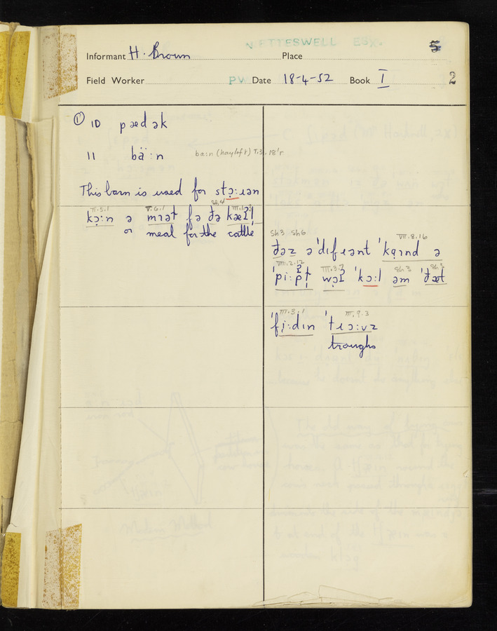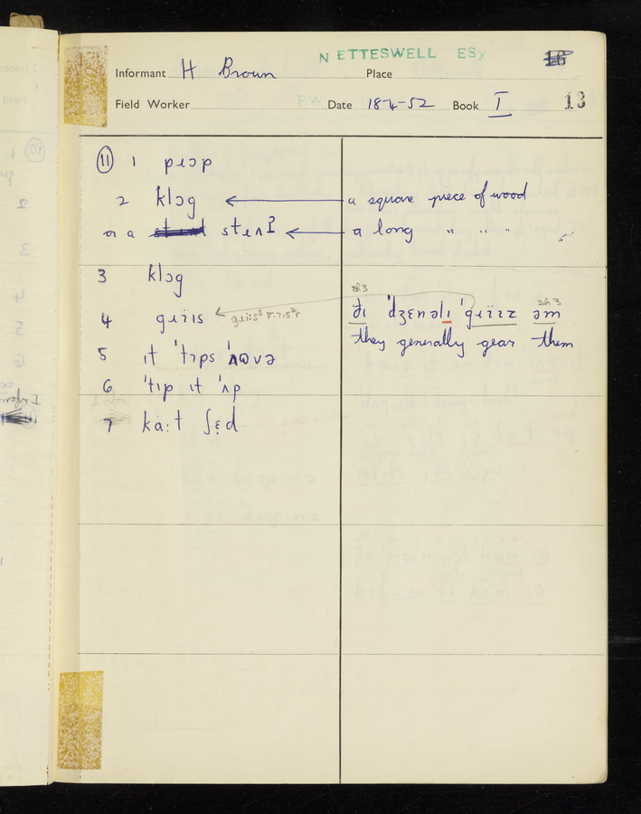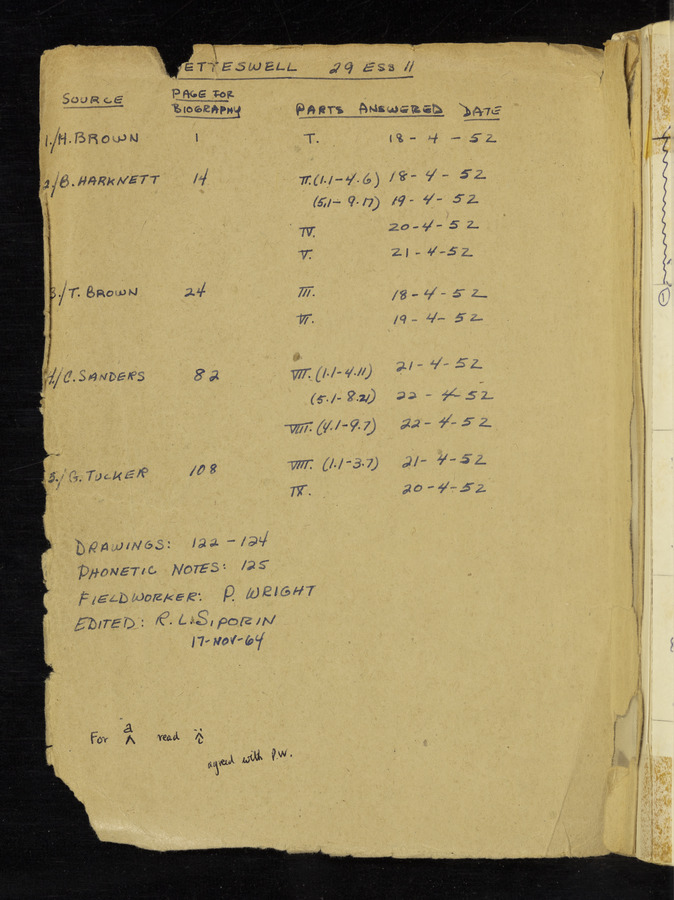 The answers of informant Harold Brown recorded by fieldworker Peter Wright in the International Phonetic Alphabet.