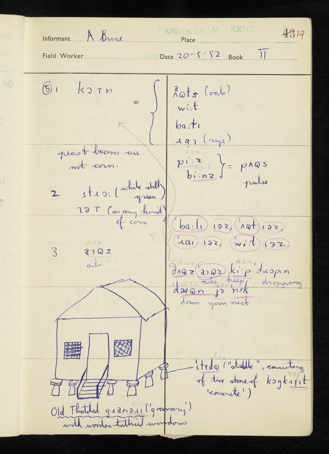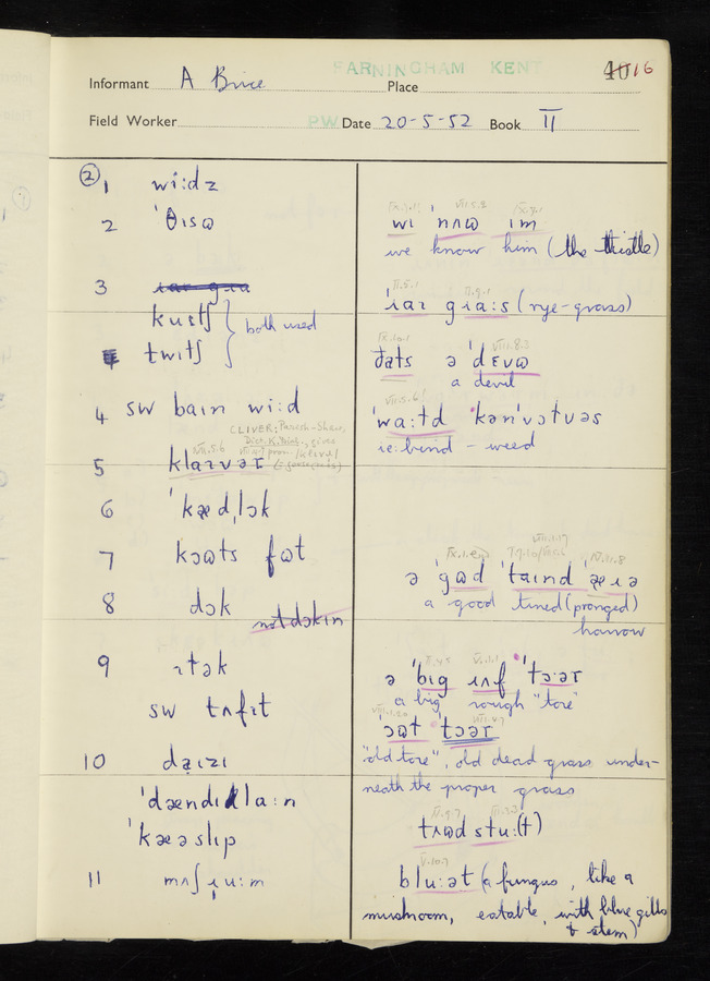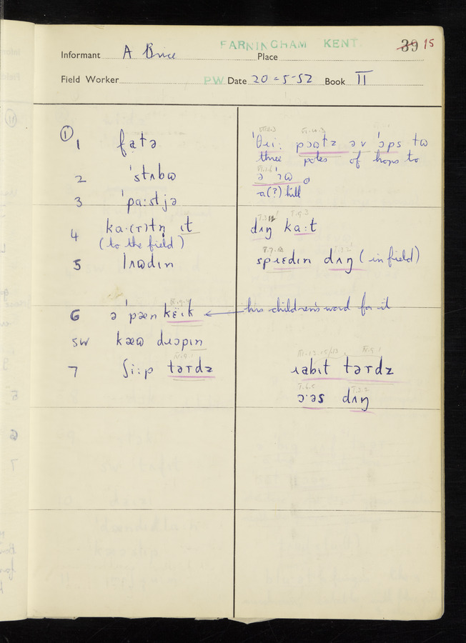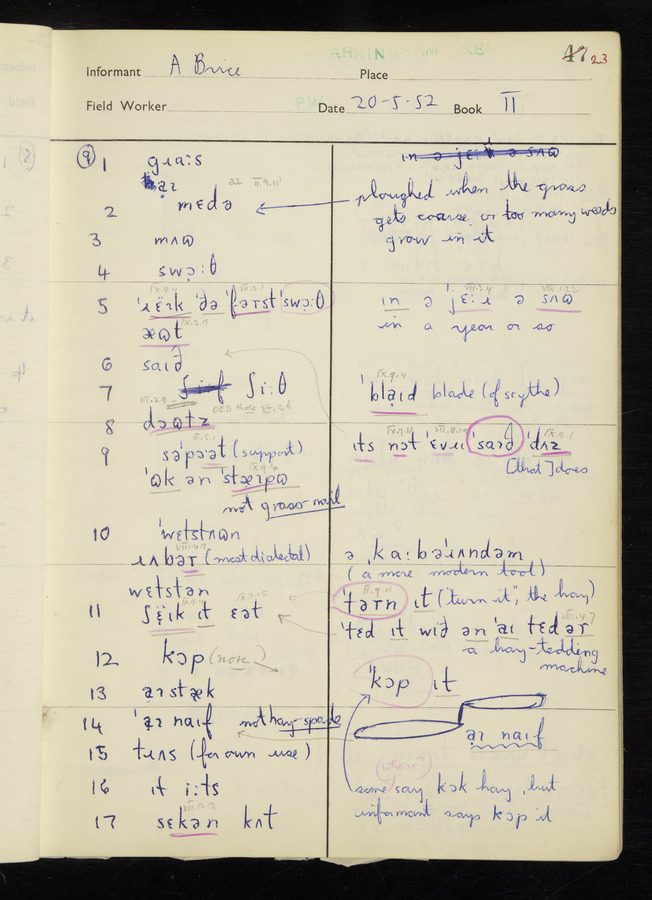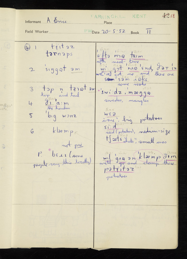 The answers of informant Albert S. Brice recorded by fieldworker Peter Wright in the International Phonetic Alphabet.