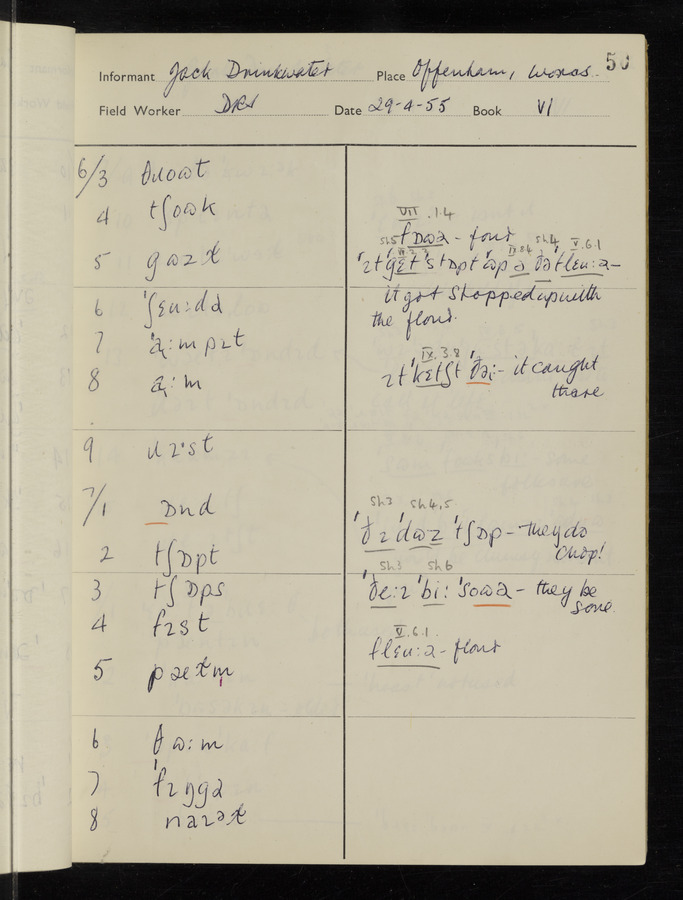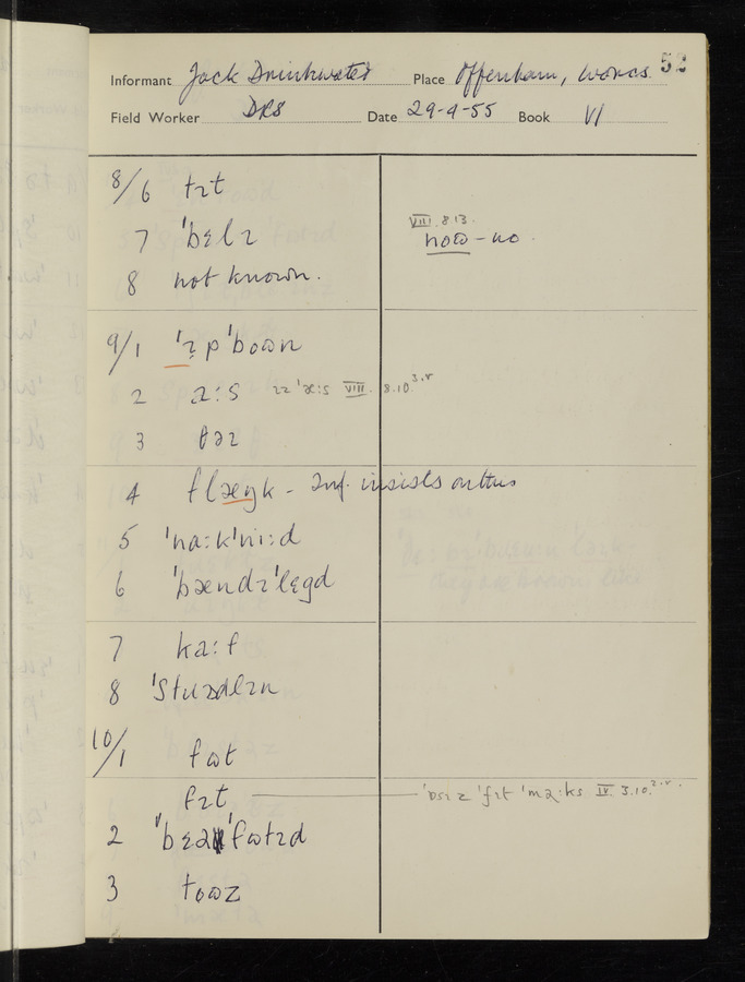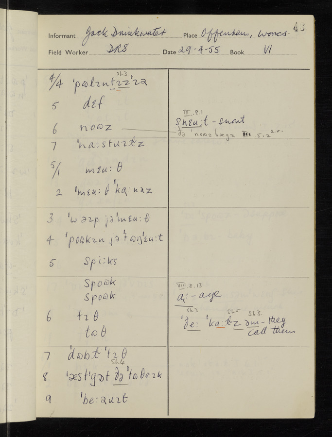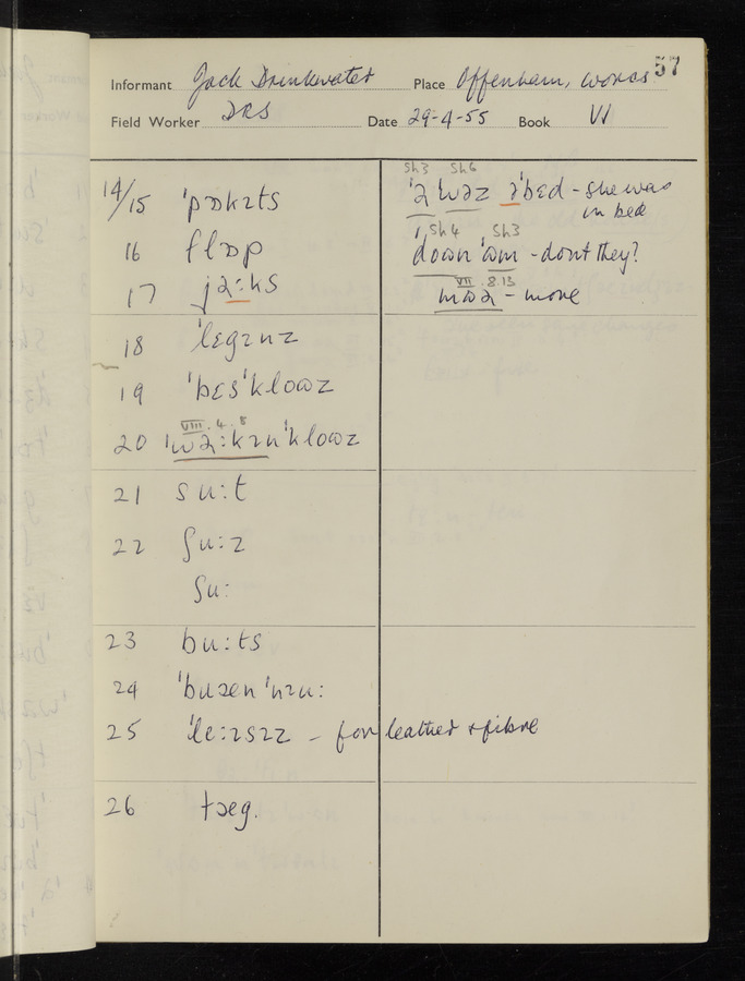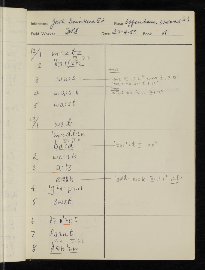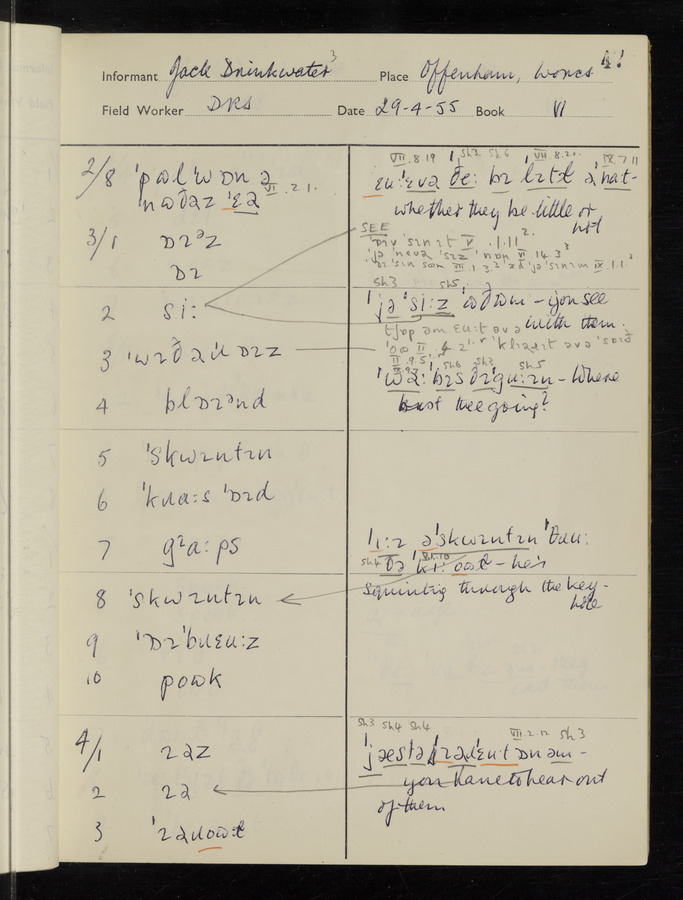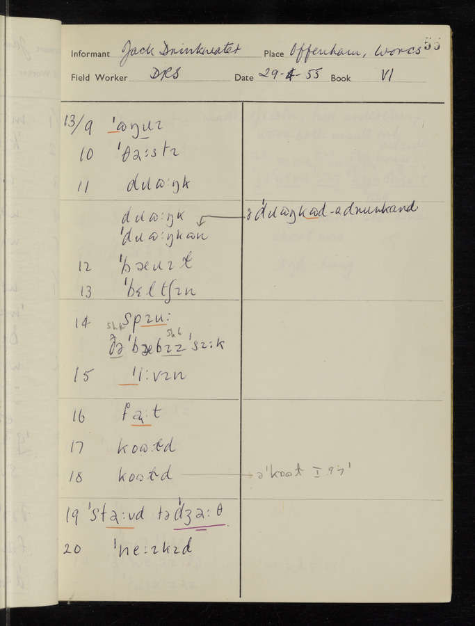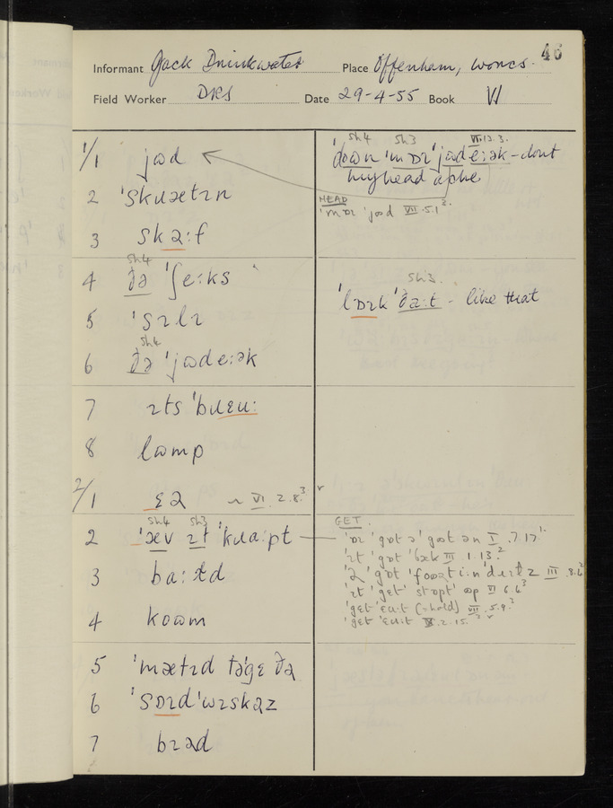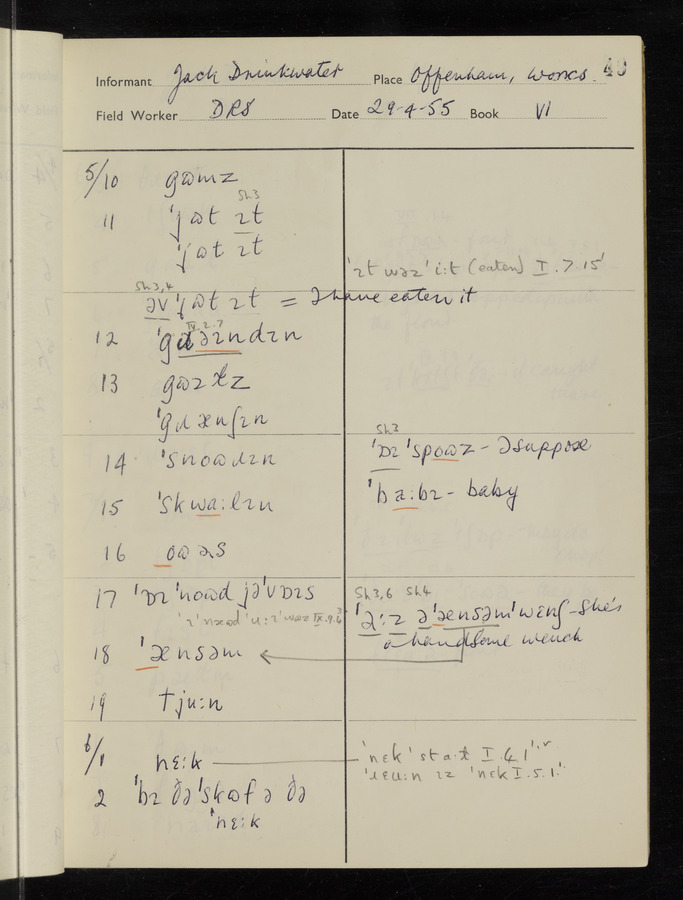 The answers of informant Jack Drinkwater recorded by fieldworker Donald Sykes in the International Phonetic Alphabet.