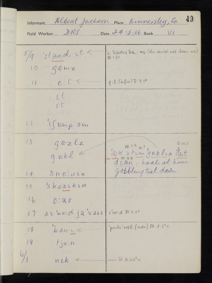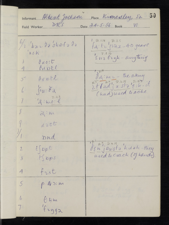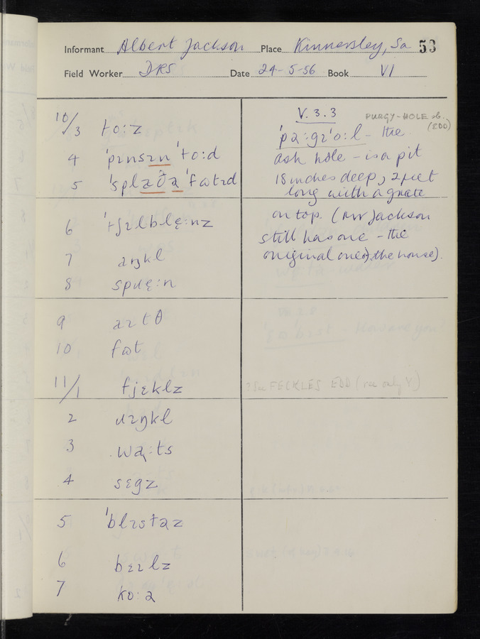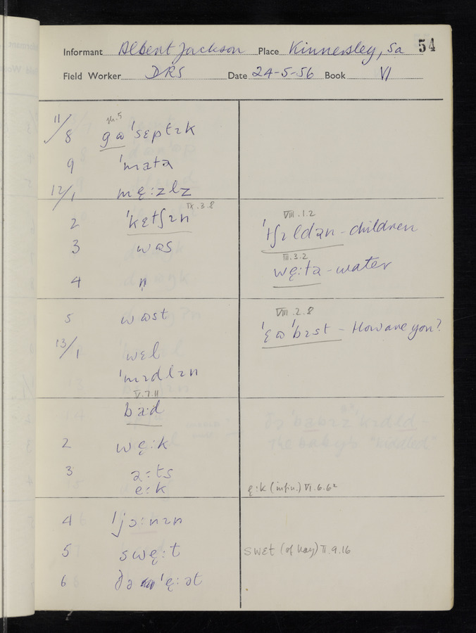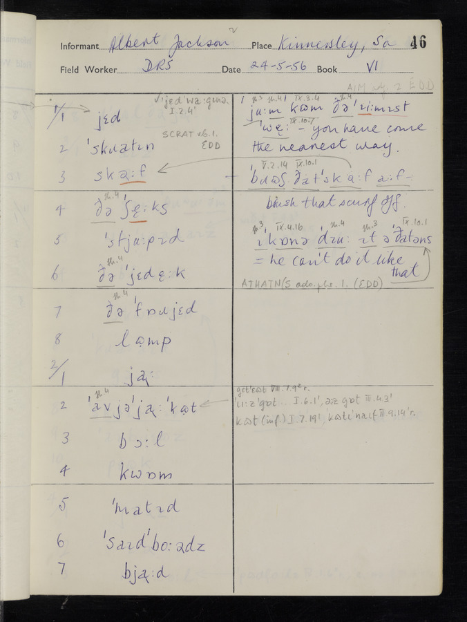 The answers of informant Albert Jackson recorded by fieldworker Donald Sykes in the International Phonetic Alphabet.