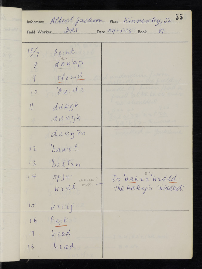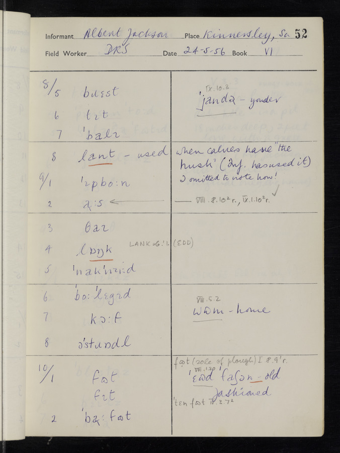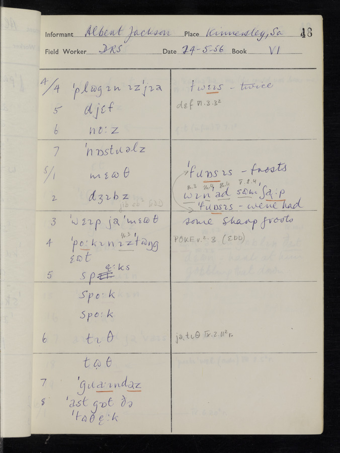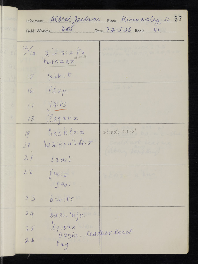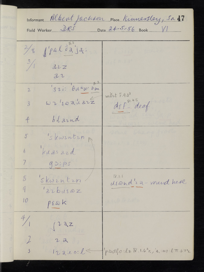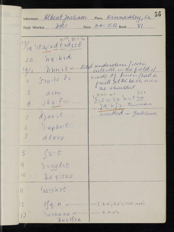 The answers of informant Albert Jackson recorded by fieldworker Donald Sykes in the International Phonetic Alphabet.