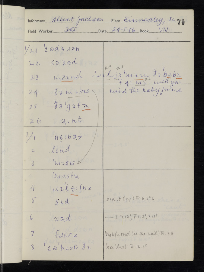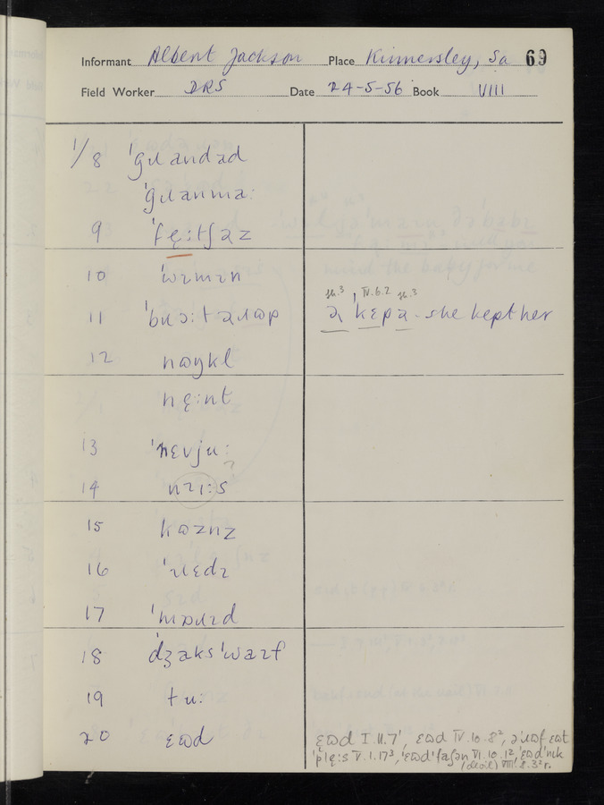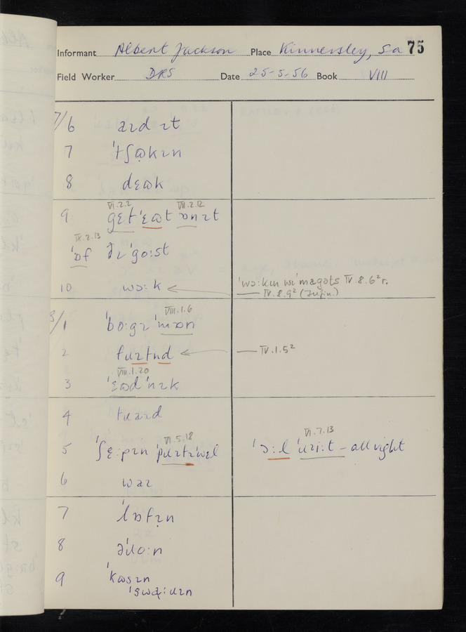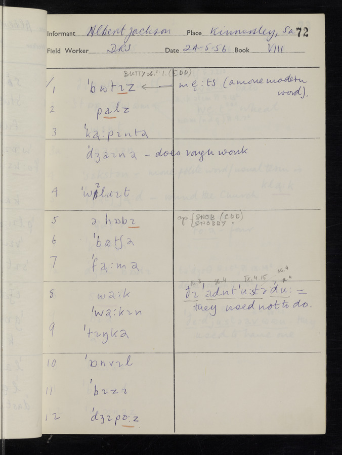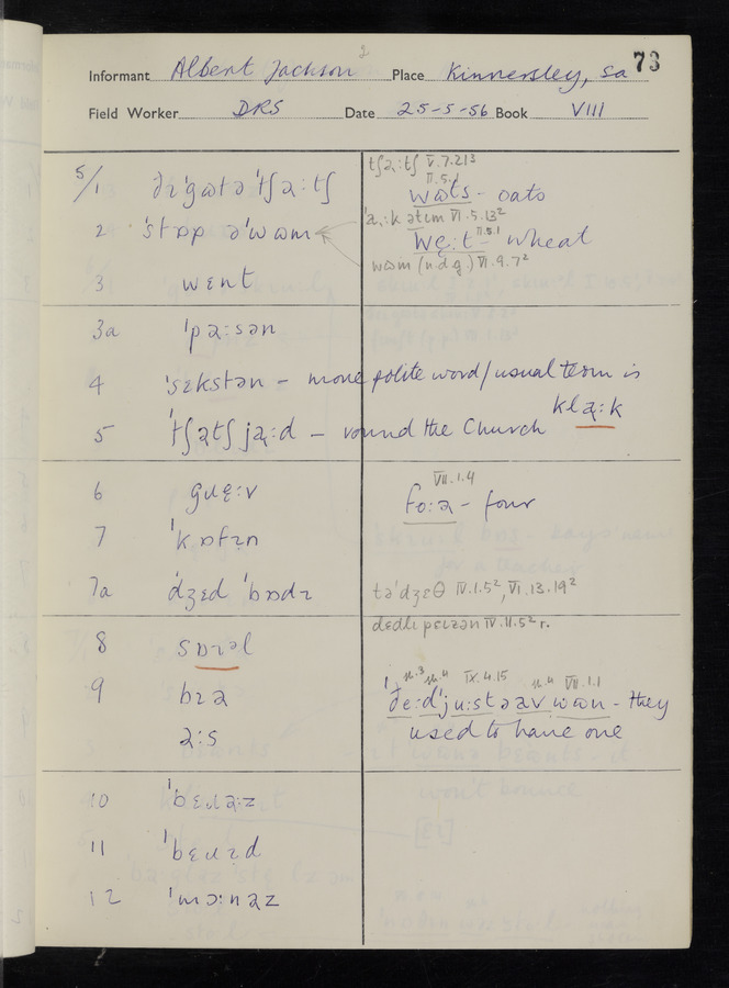 The answers of informant Albert Jackson recorded by fieldworker Donald Sykes in the International Phonetic Alphabet.