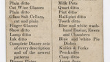 Transcription of reverse: The following comprise a part of the Stock: - Quart Decanters, Pint Decanters, Rich silver edged Castors, Common Castors, Cut Tumblers, Plain Tumblers, Cut Wine Glasses, Plain Wine Glasses, Glass Salt Cellars, cut and plain, Finger Glasses, Show Glasses, Lamp Glasses, Ink Glasses, Complete Dinner sets of every description and of the newest patterns, Dinner Plates, Soup Plates, Cheese Plates, Dishes, Tureens, Sauce Boats, Butter Boats, Fish Strainers, Tea Pots, Tea Cups & Saucers, Milk Pots, Quart Pots, Pint Pots, Half-pint Pots, Tooth Pots, Blue and white wash-hand Basins, Ewers and Chambers, Blue and white Pie Dishes, Knifes & Forks, Pen-knifes, Clasp knifes, Japan Jugs, Cork Screws, and all sorts of Cutlery, &c. &c. N.B. Shipping Supplied with Live and Dead Stock on the Shortest Notice, ON MODERATE TERMS. W. HOOKEY, PRINTER.