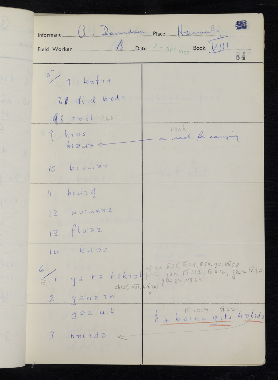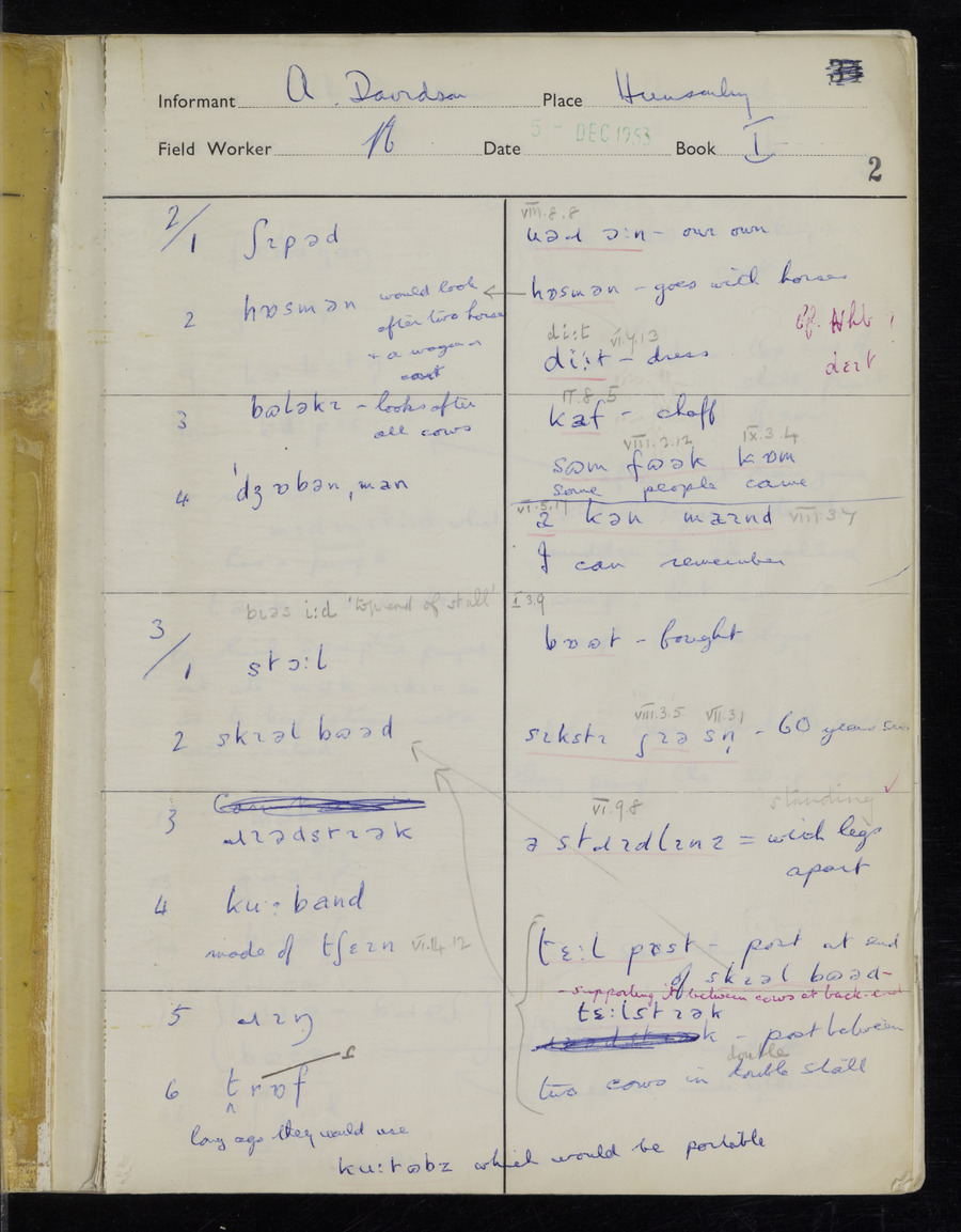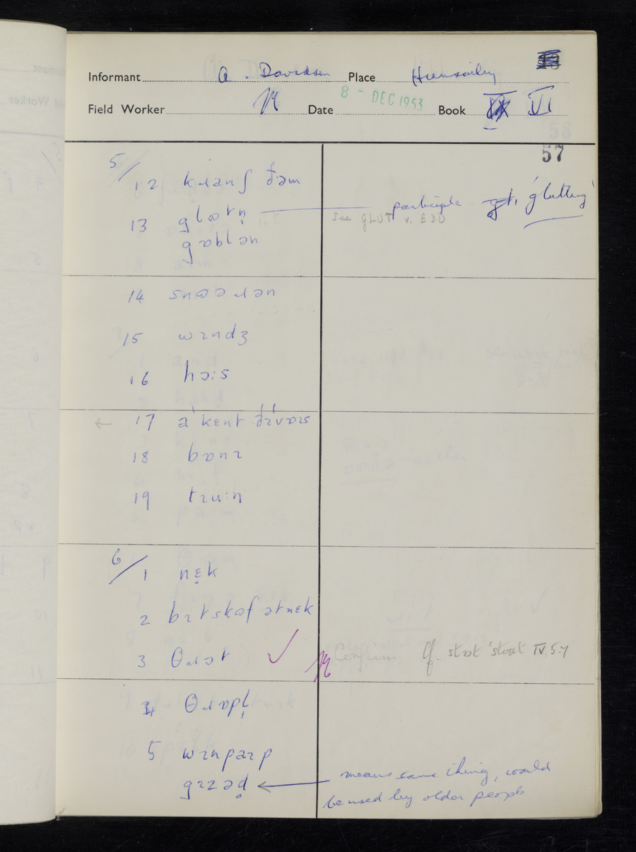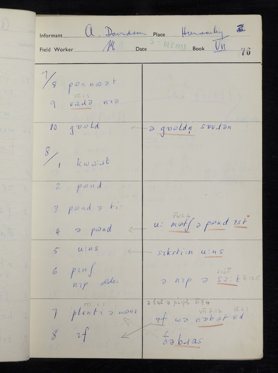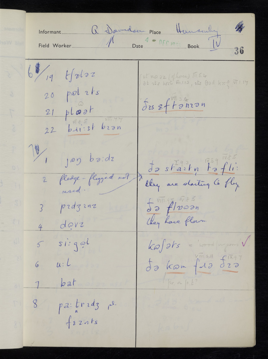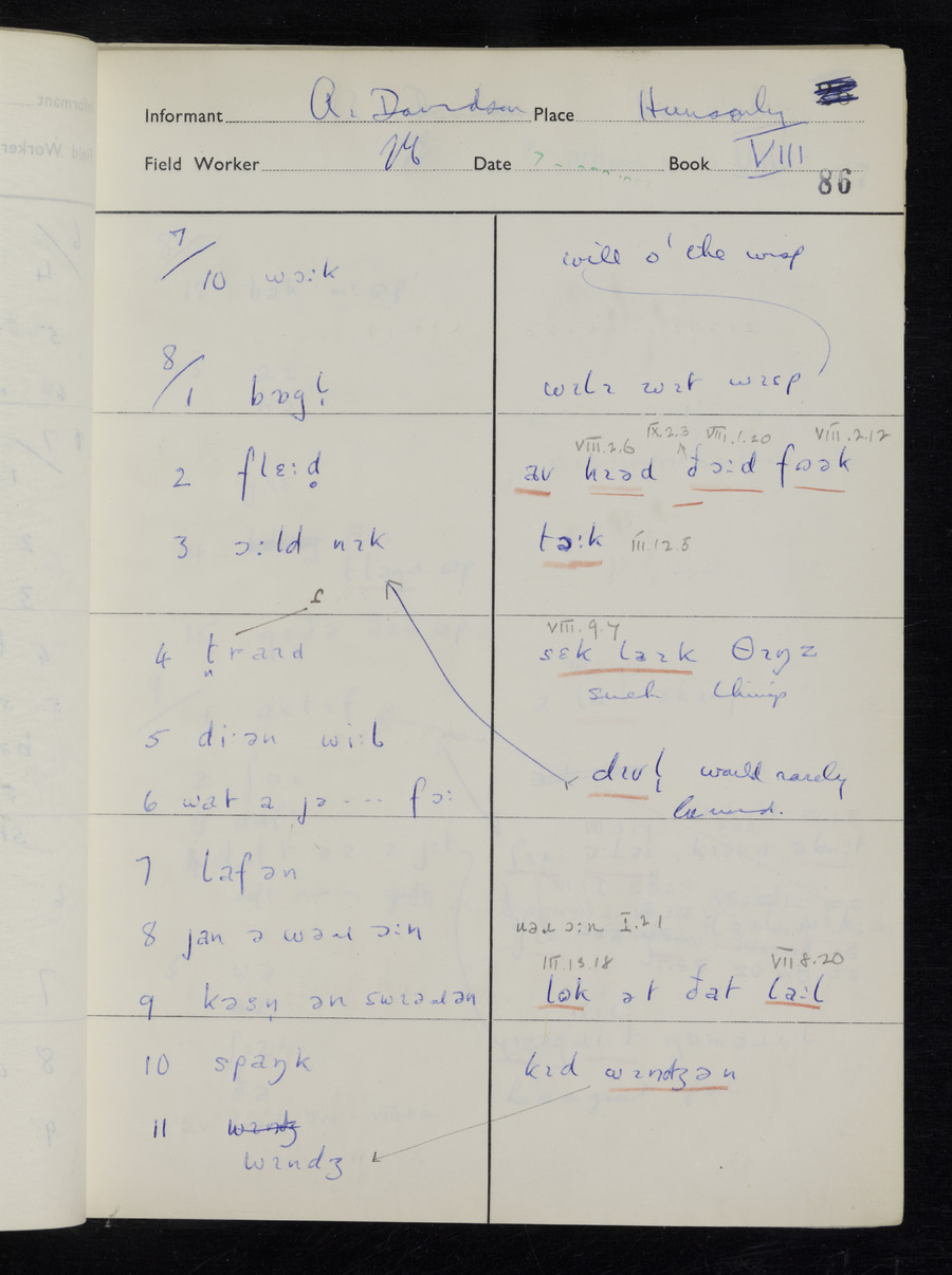 Interviews have been carried out by fieldworker Stanley Ellis. There is one informant for this response book - Albert Davidson His responses can be found in the books below.