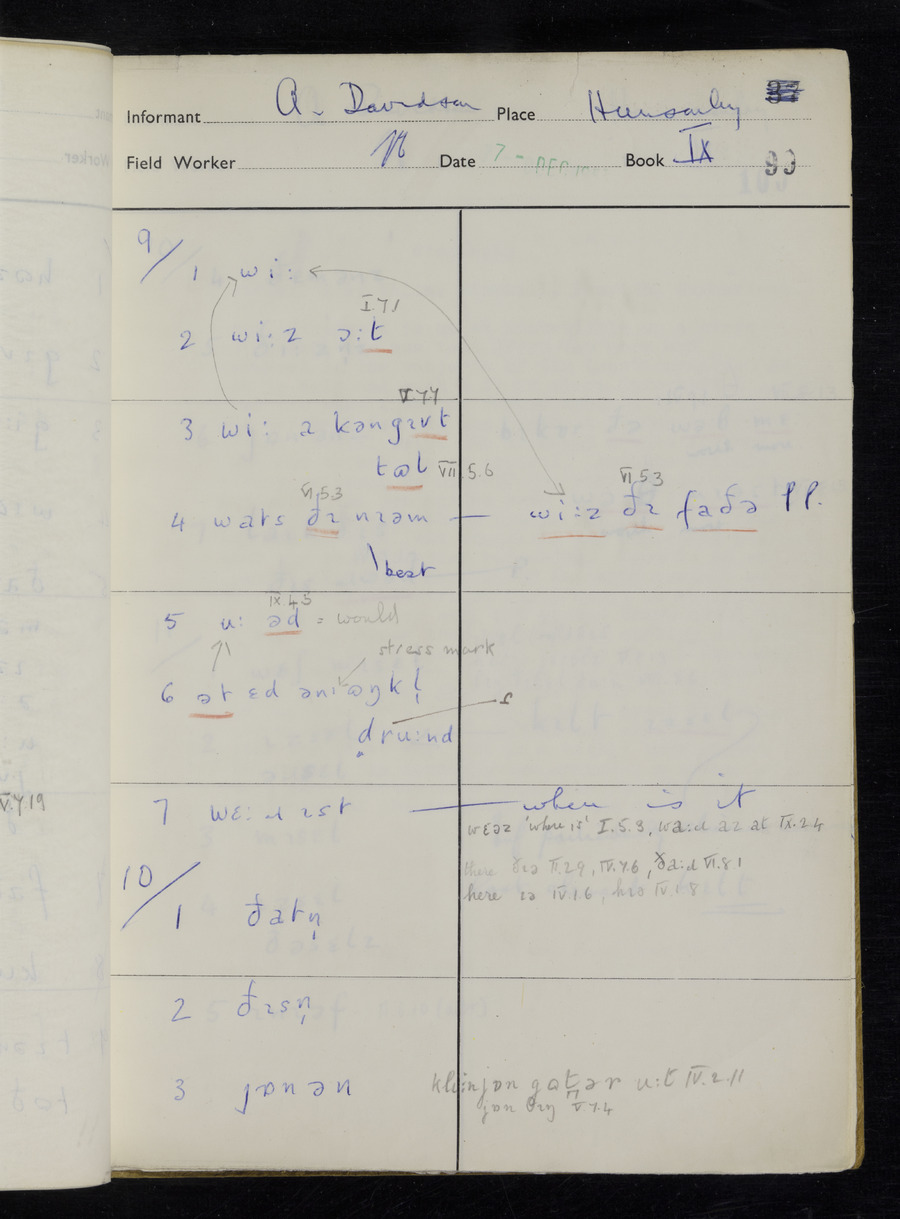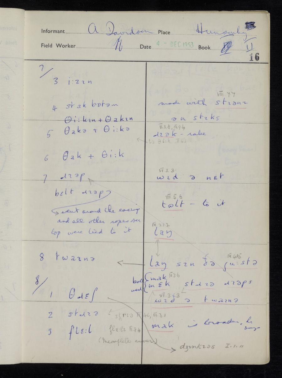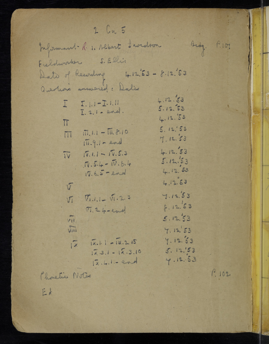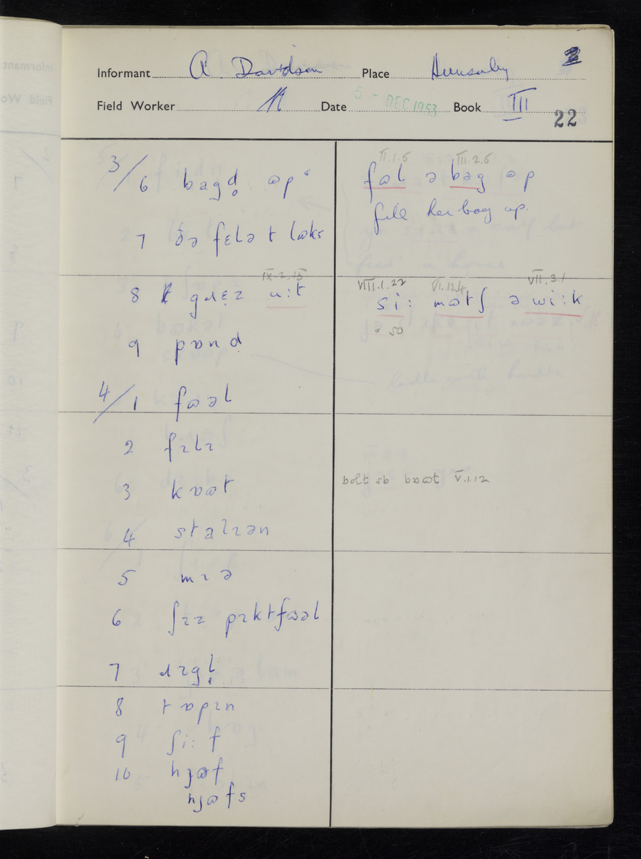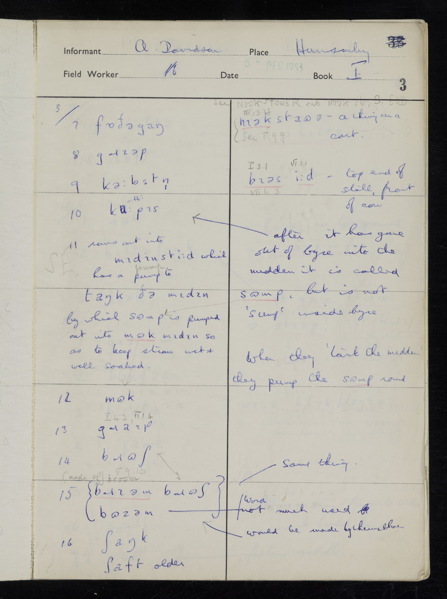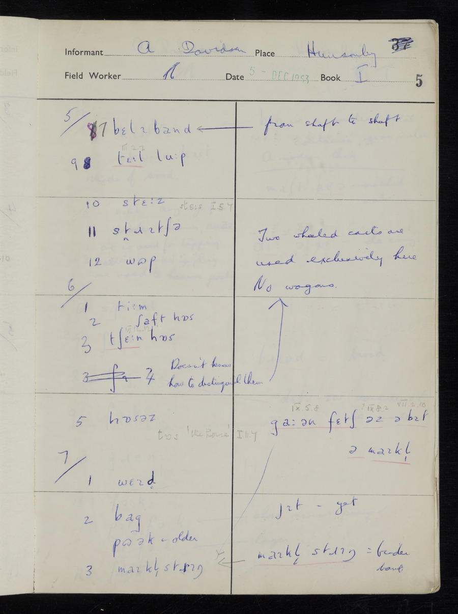 Interviews have been carried out by fieldworker Stanley Ellis. There is one informant for this response book - Albert Davidson His responses can be found in the books below.