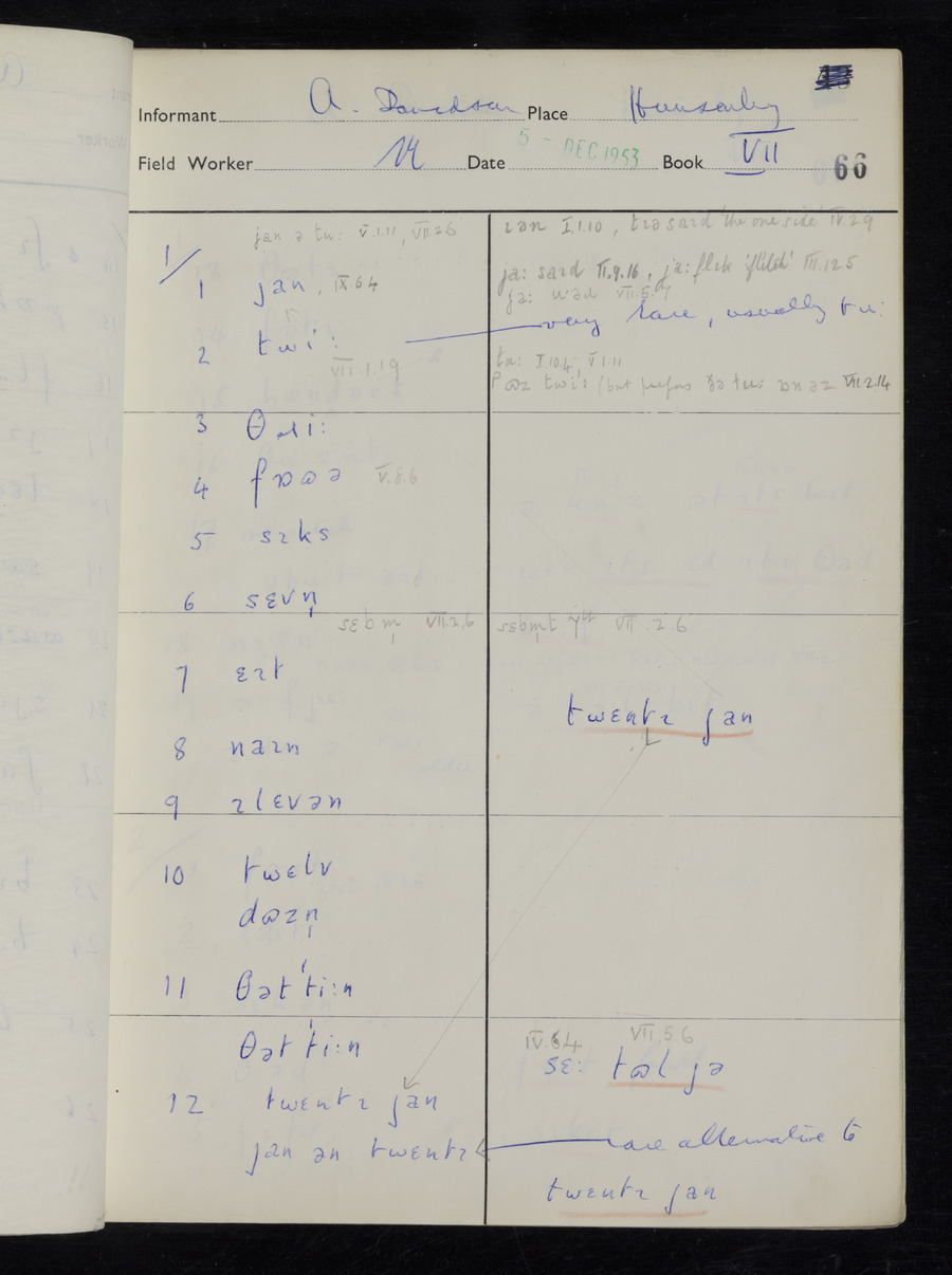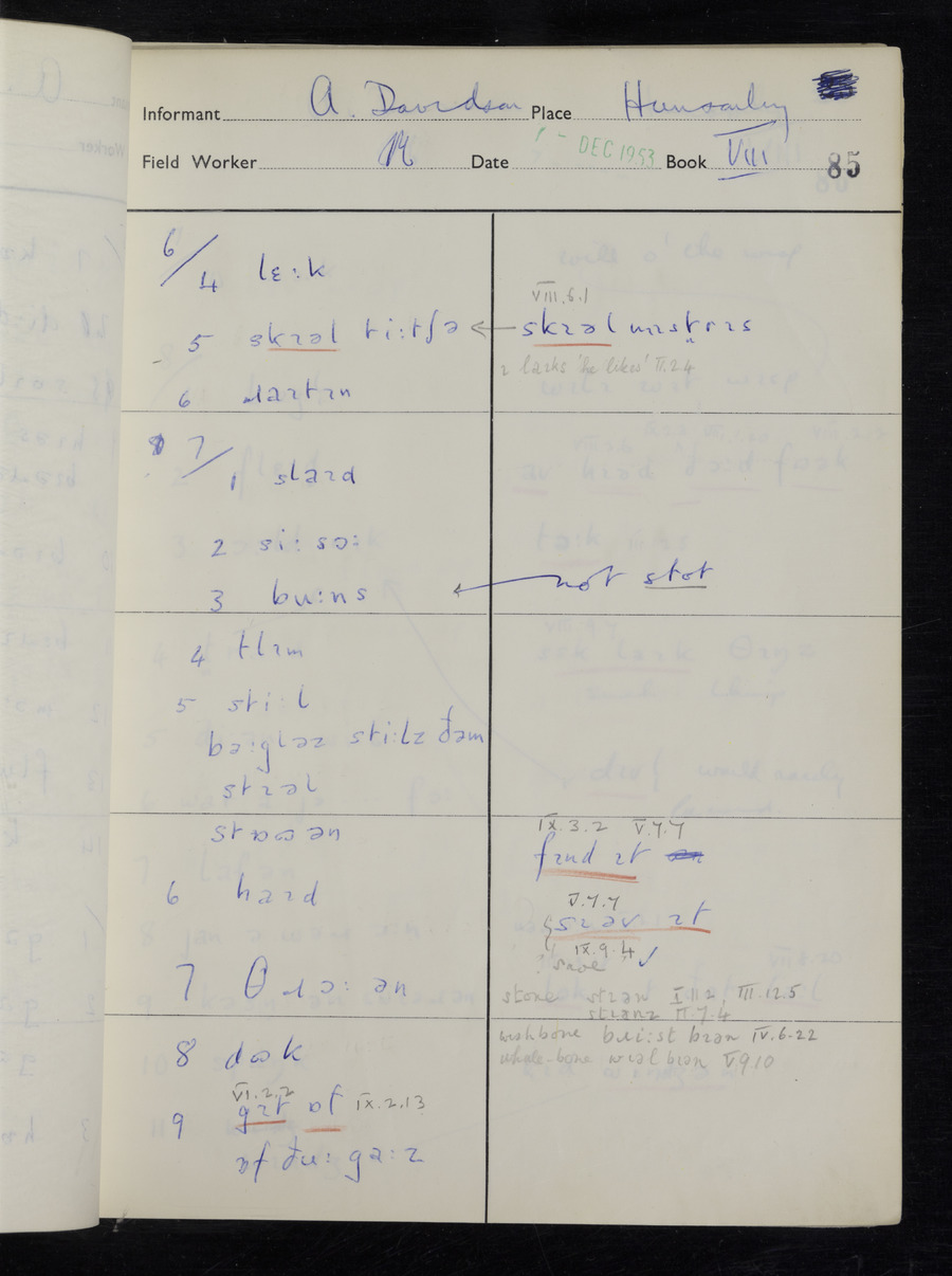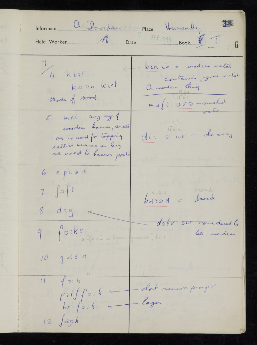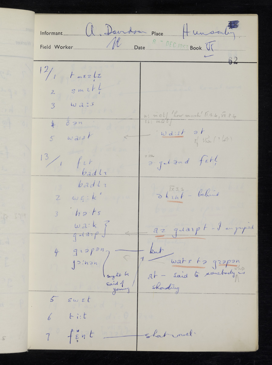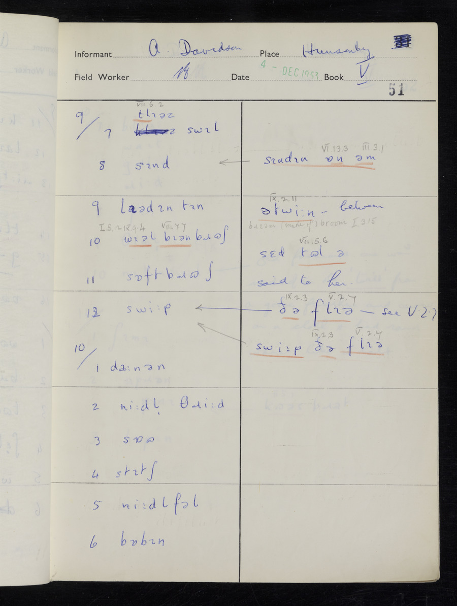 Interviews have been carried out by fieldworker Stanley Ellis. There is one informant for this response book - Albert Davidson His responses can be found in the books below.