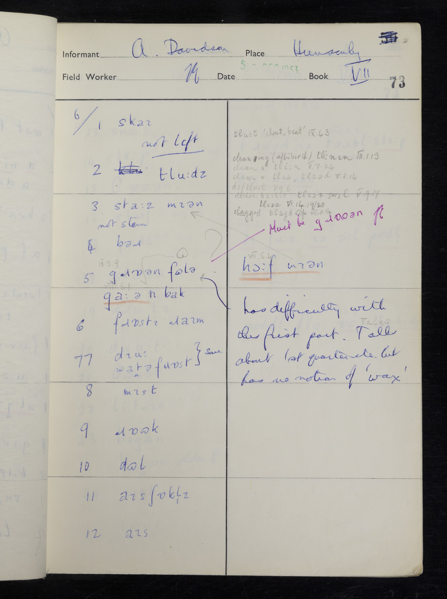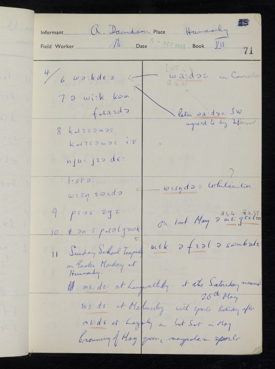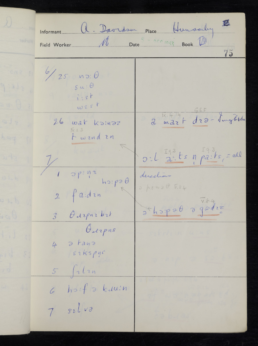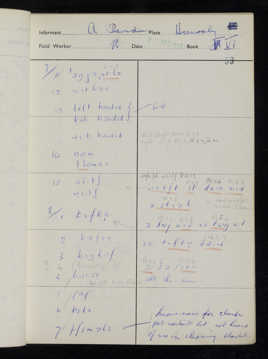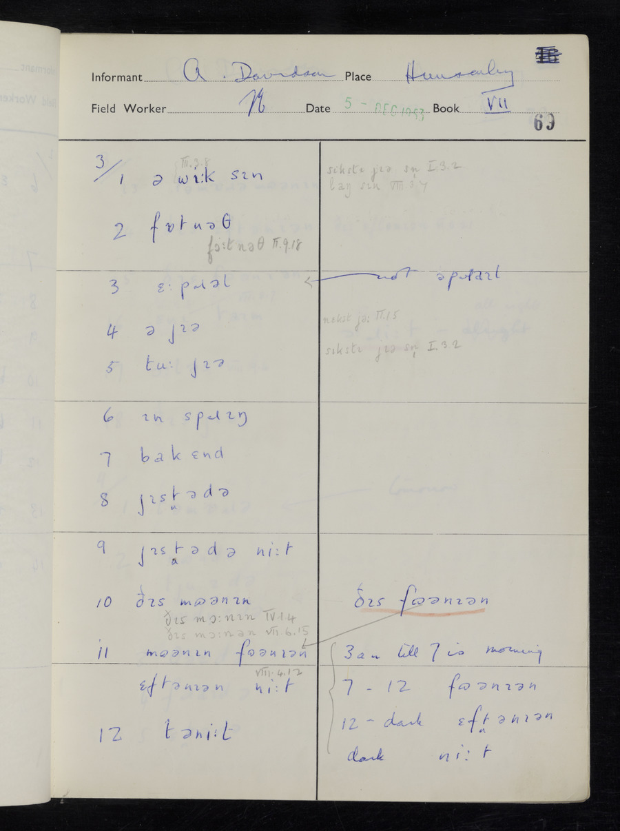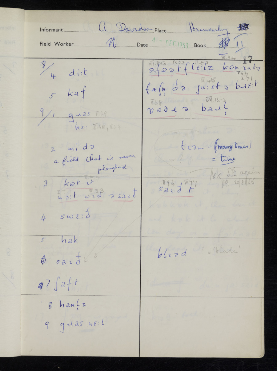 Interviews have been carried out by fieldworker Stanley Ellis. There is one informant for this response book - Albert Davidson His responses can be found in the books below.
