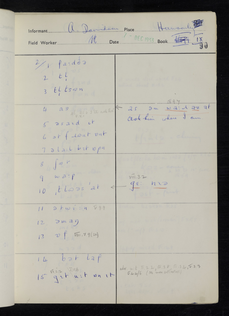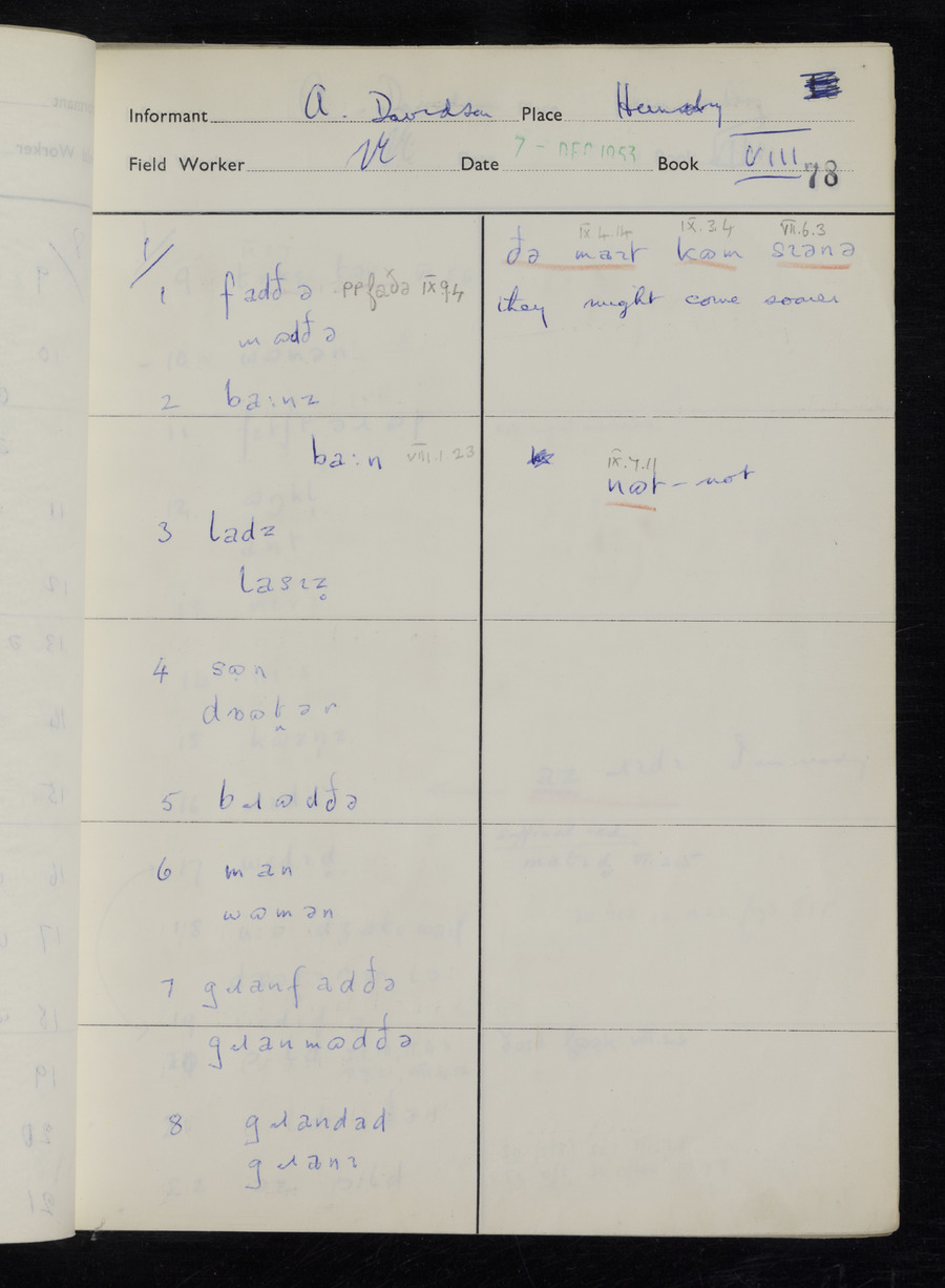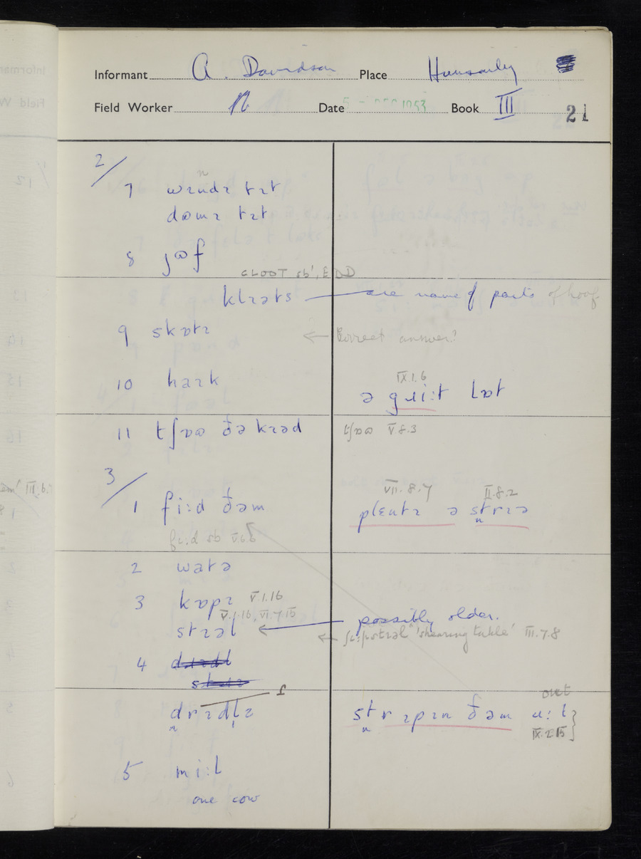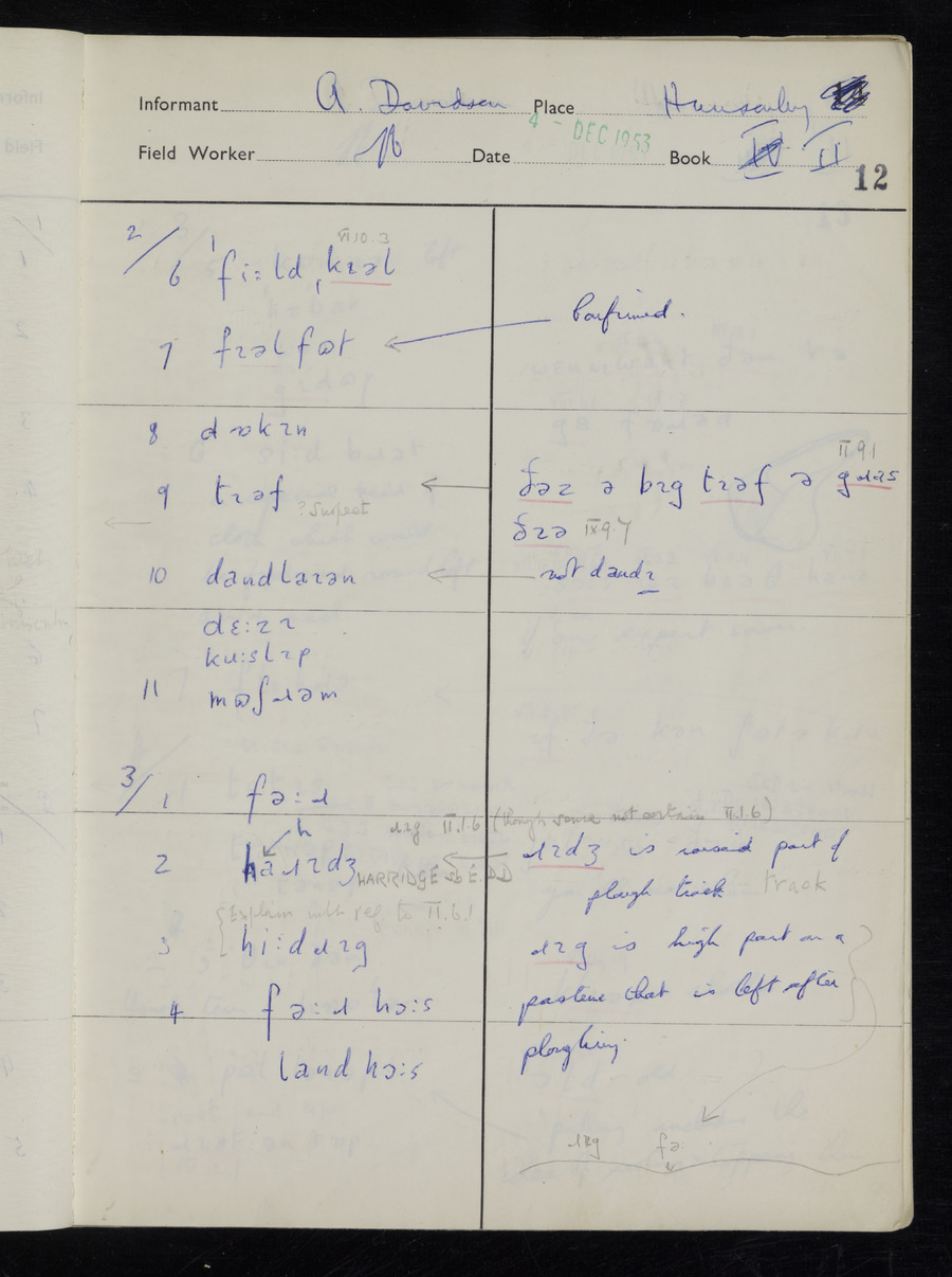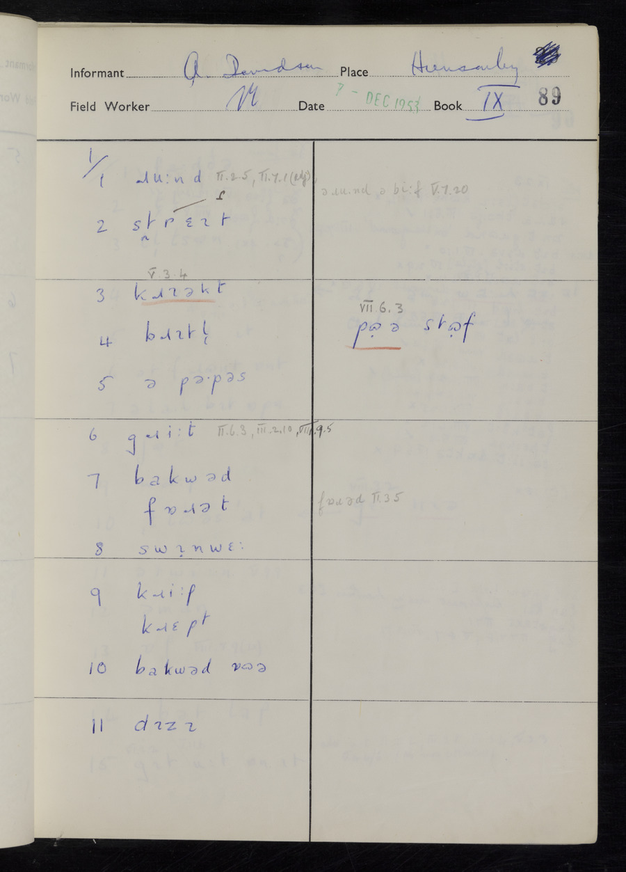 Interviews have been carried out by fieldworker Stanley Ellis. There is one informant for this response book - Albert Davidson His responses can be found in the books below.