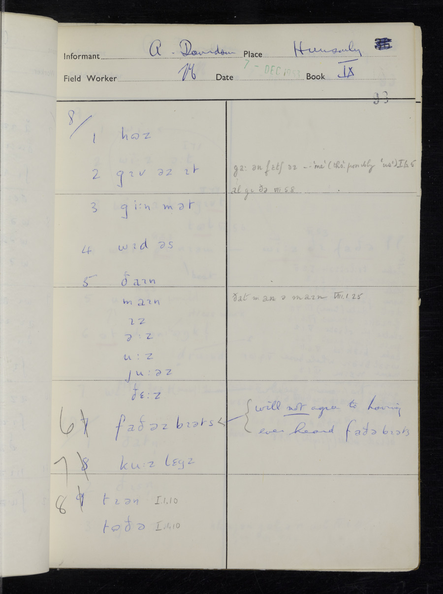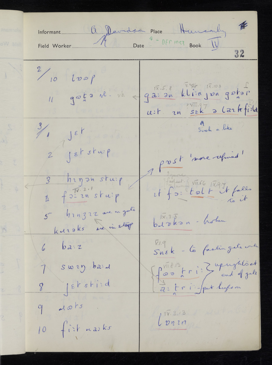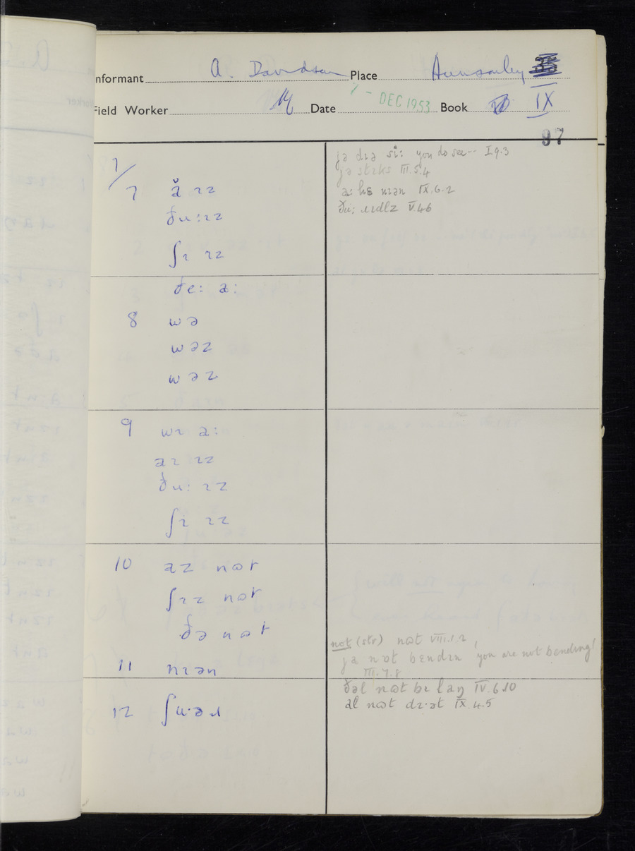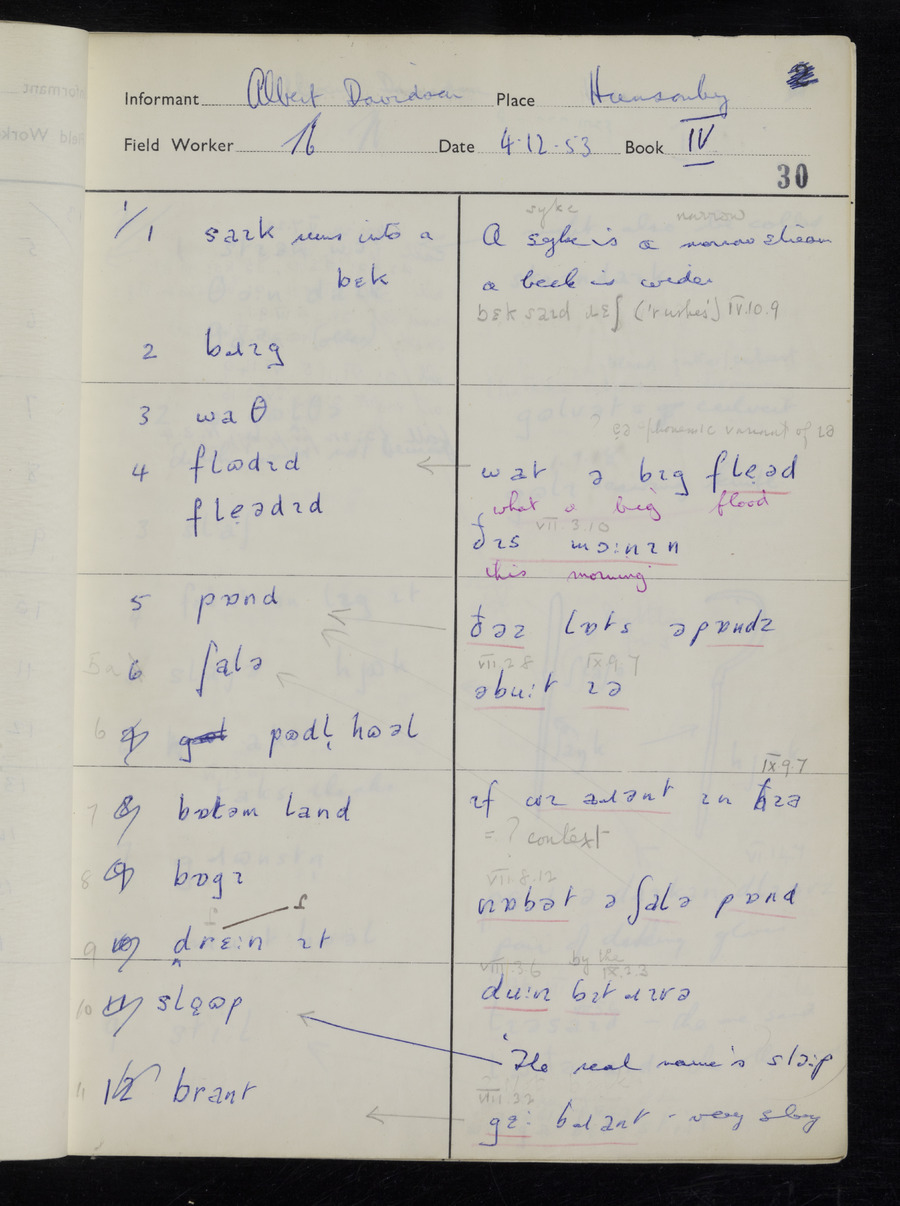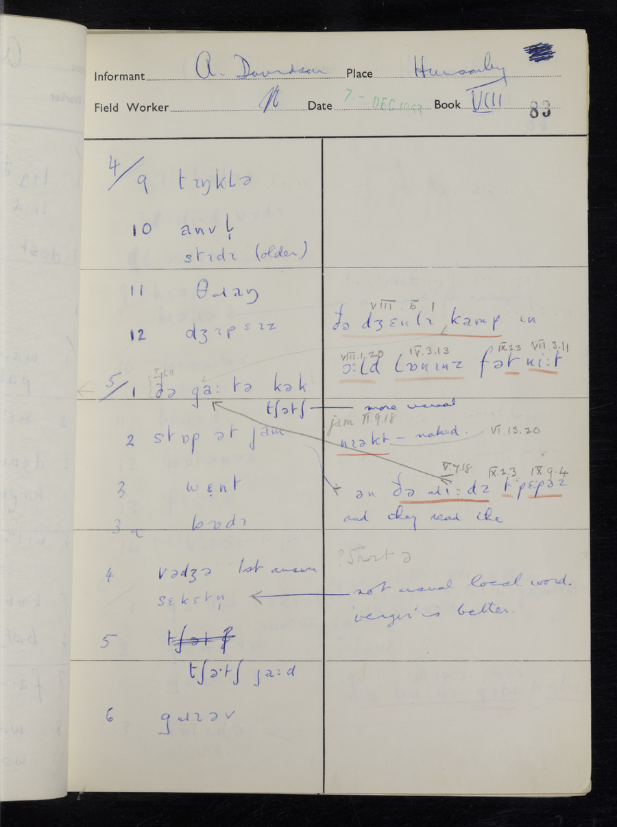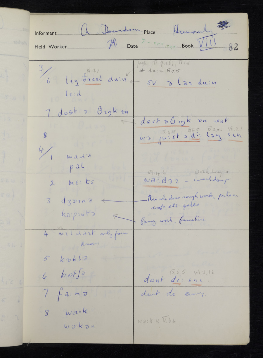 Interviews have been carried out by fieldworker Stanley Ellis. There is one informant for this response book - Albert Davidson His responses can be found in the books below.