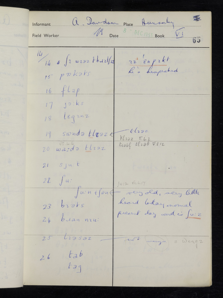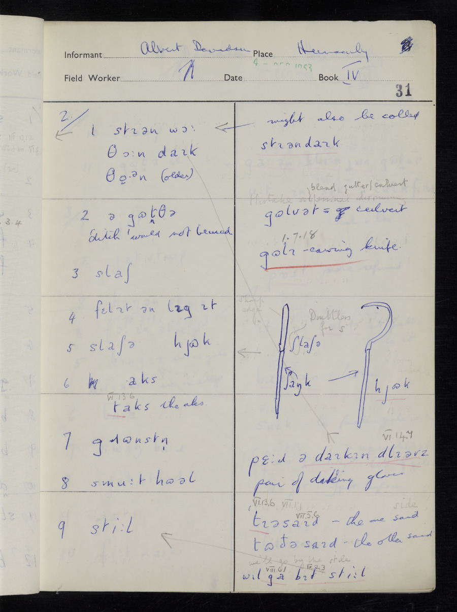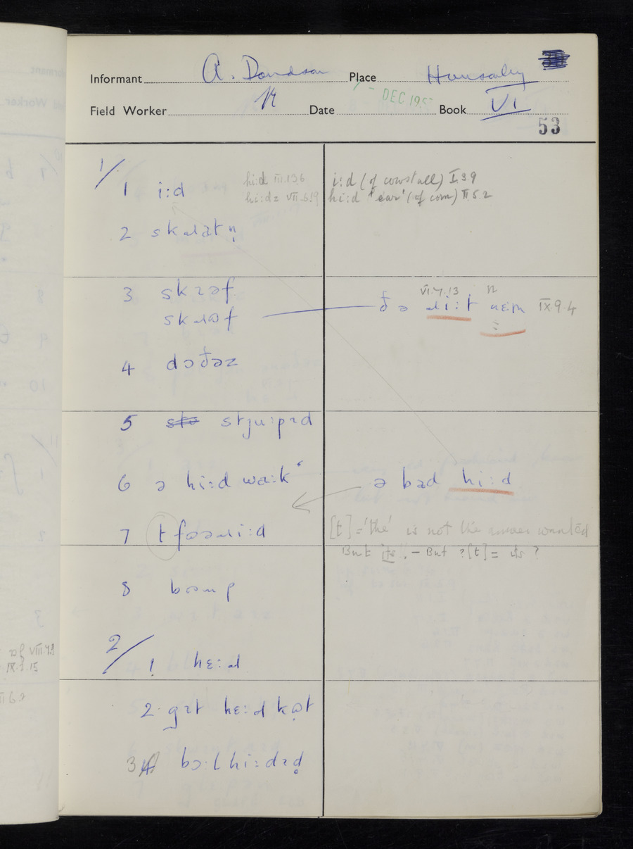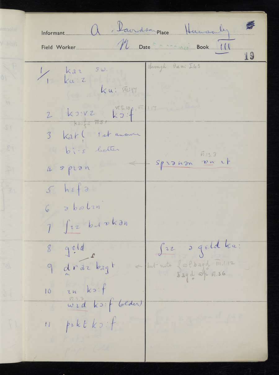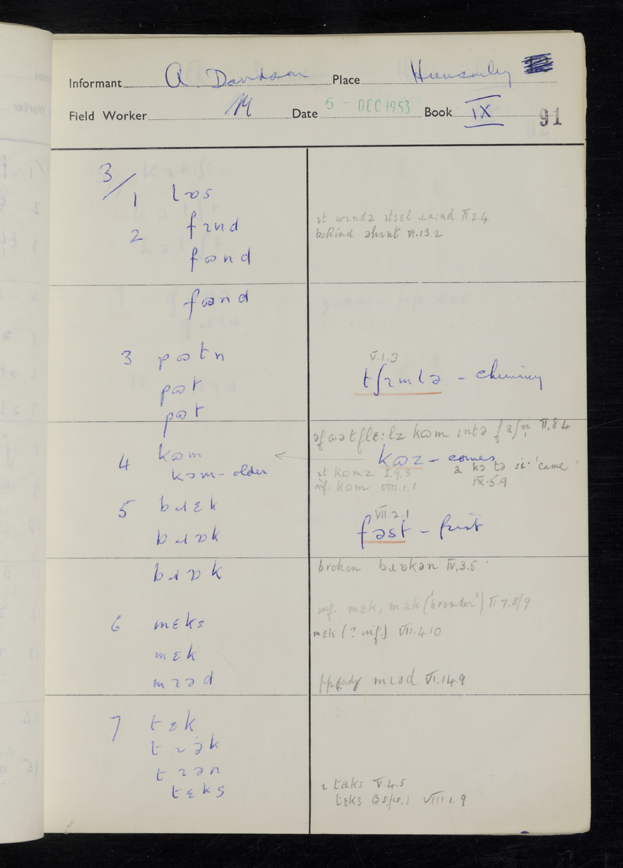 Interviews have been carried out by fieldworker Stanley Ellis. There is one informant for this response book - Albert Davidson His responses can be found in the books below.