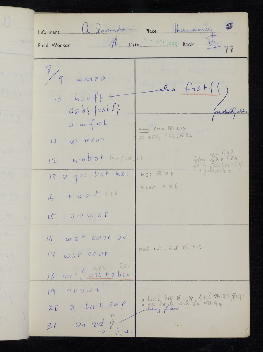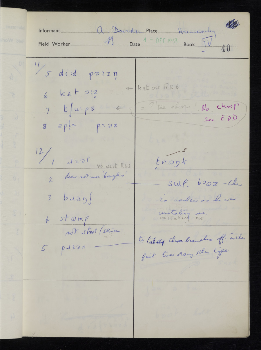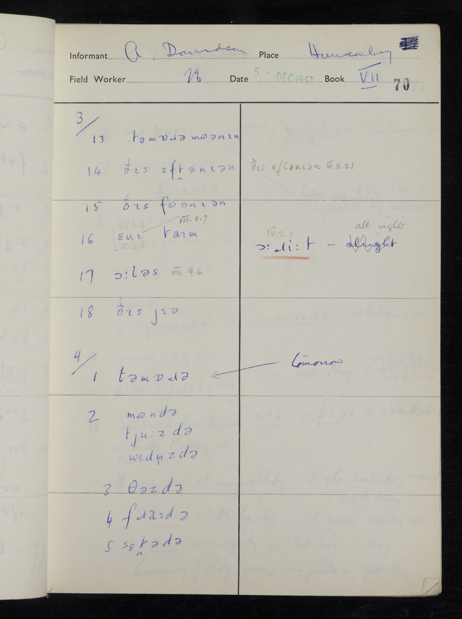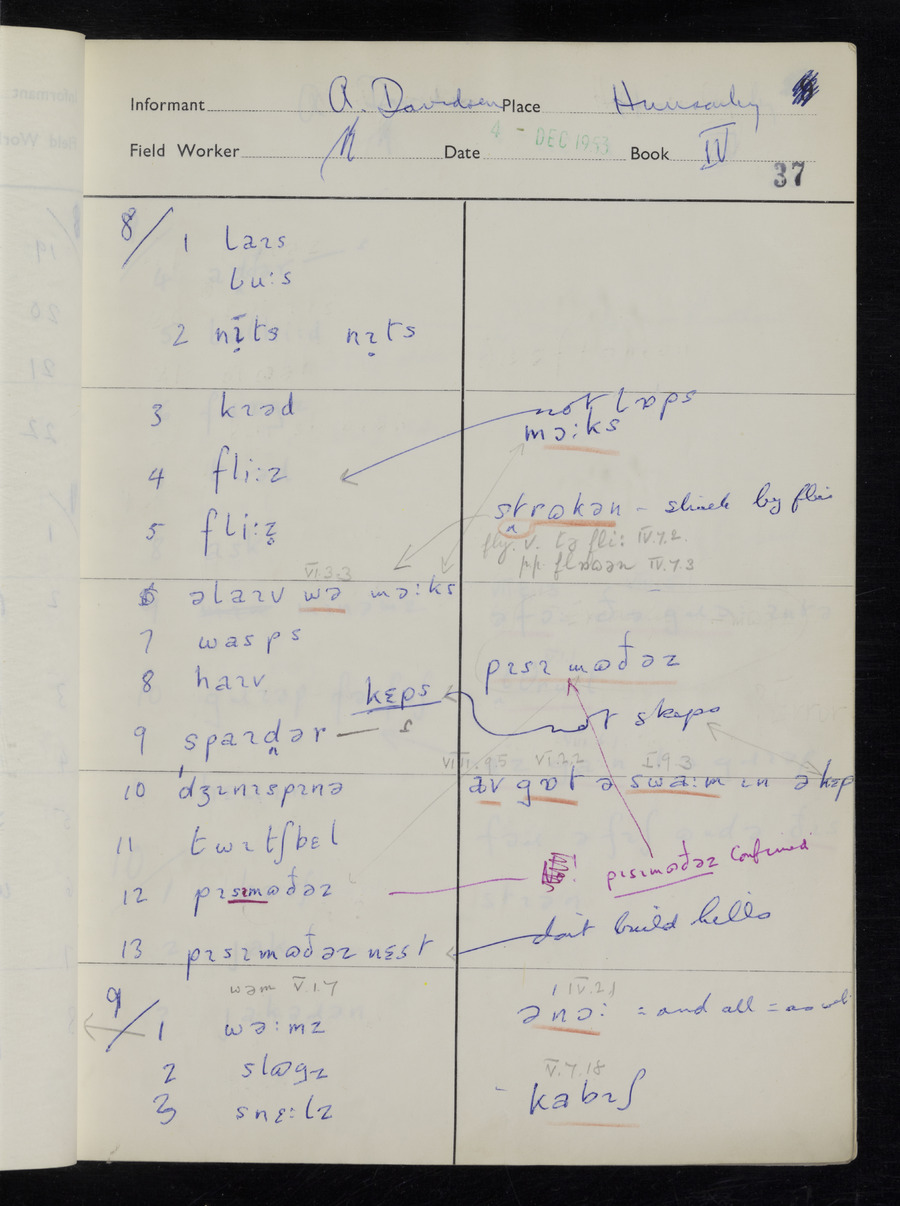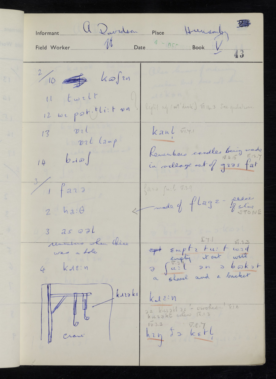Interviews have been carried out by fieldworker Stanley Ellis. There is one informant for this response book - Albert Davidson His responses can be found in the books below.