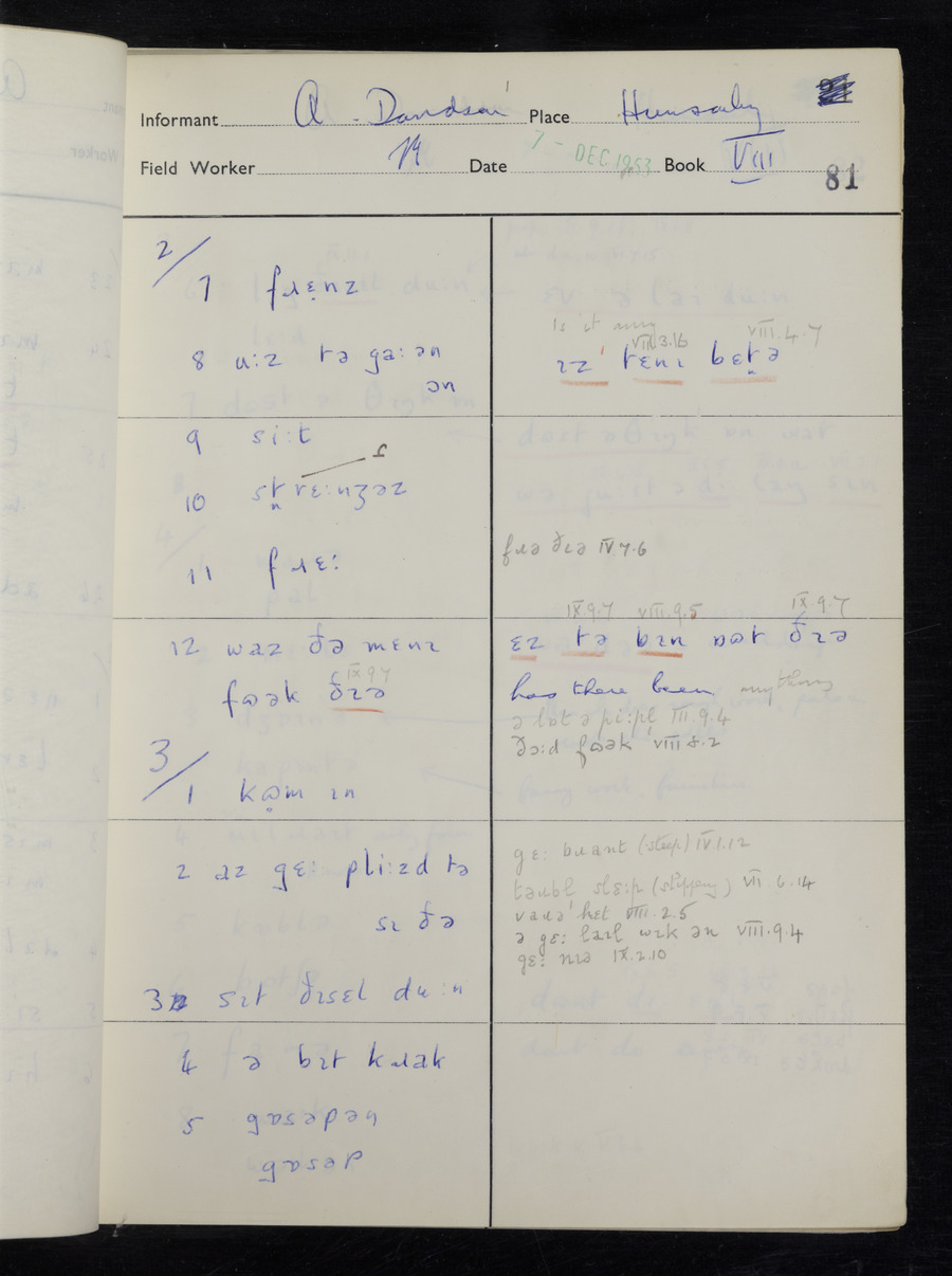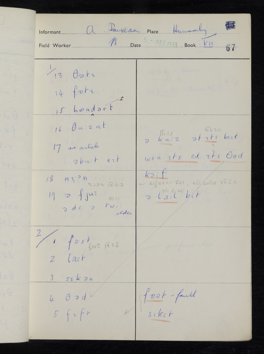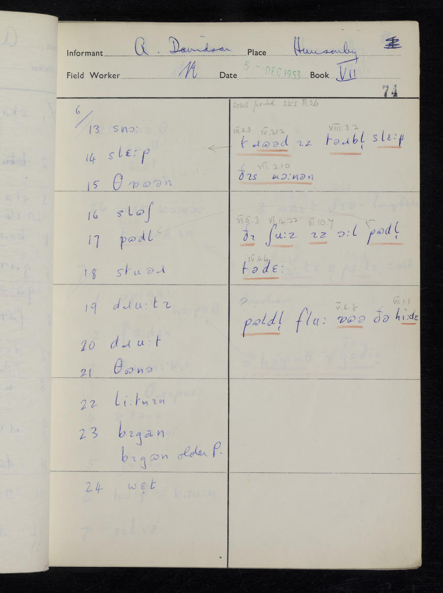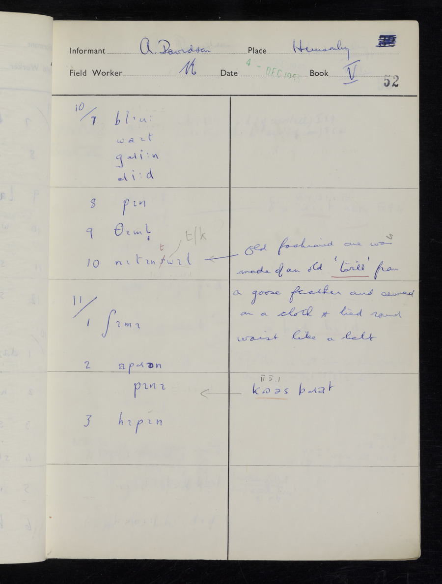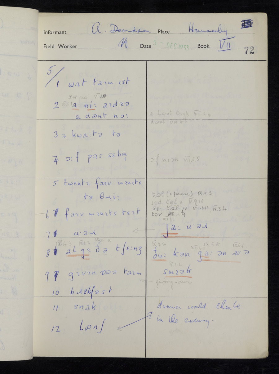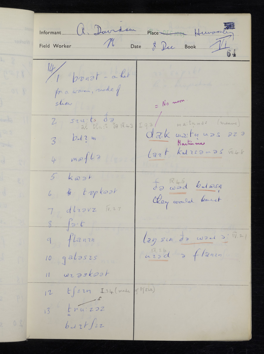 Interviews have been carried out by fieldworker Stanley Ellis. There is one informant for this response book - Albert Davidson His responses can be found in the books below.