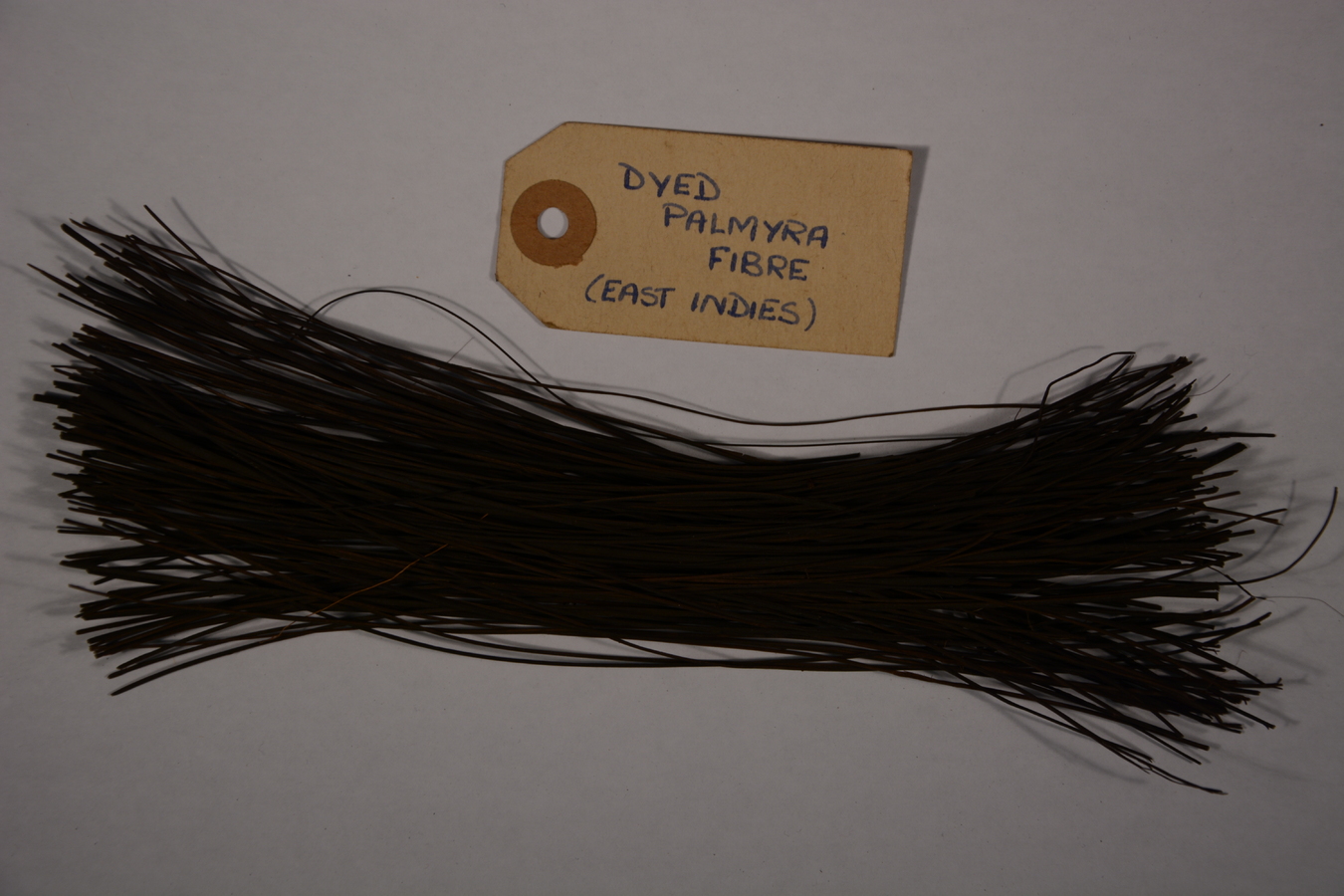 Handwritten label: Side 1: 'DYED PALMYRA FIBRE (EAST INDIES)'