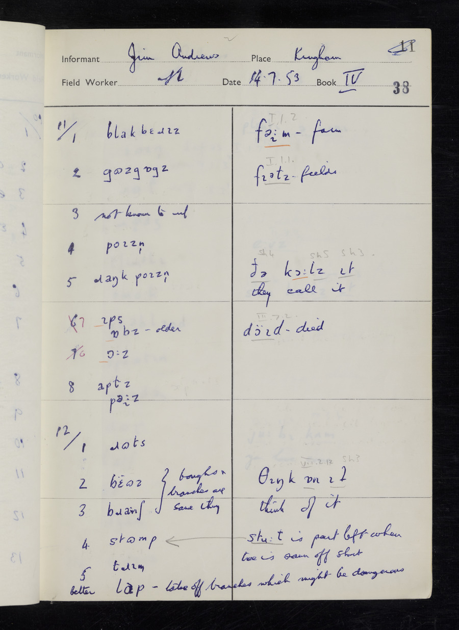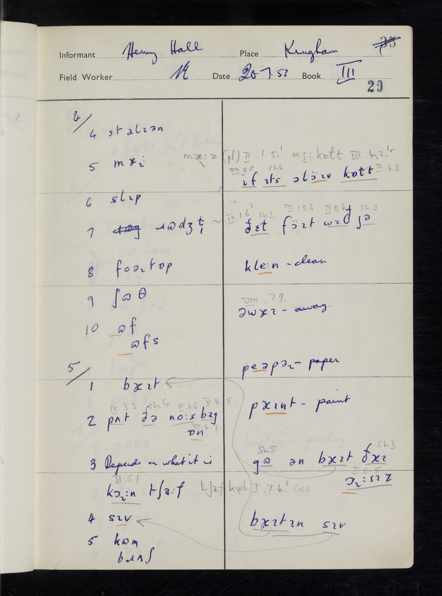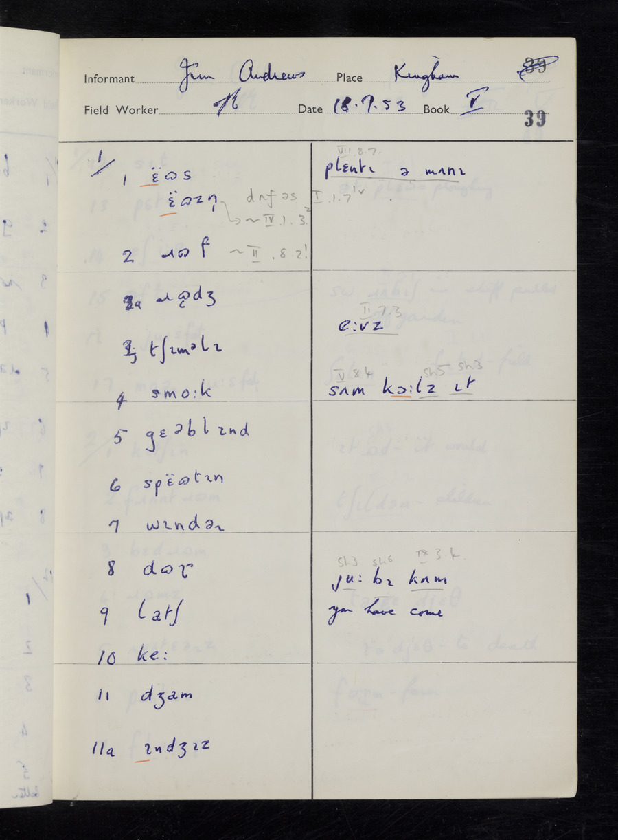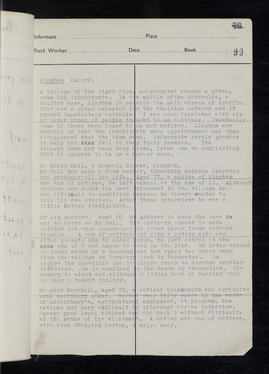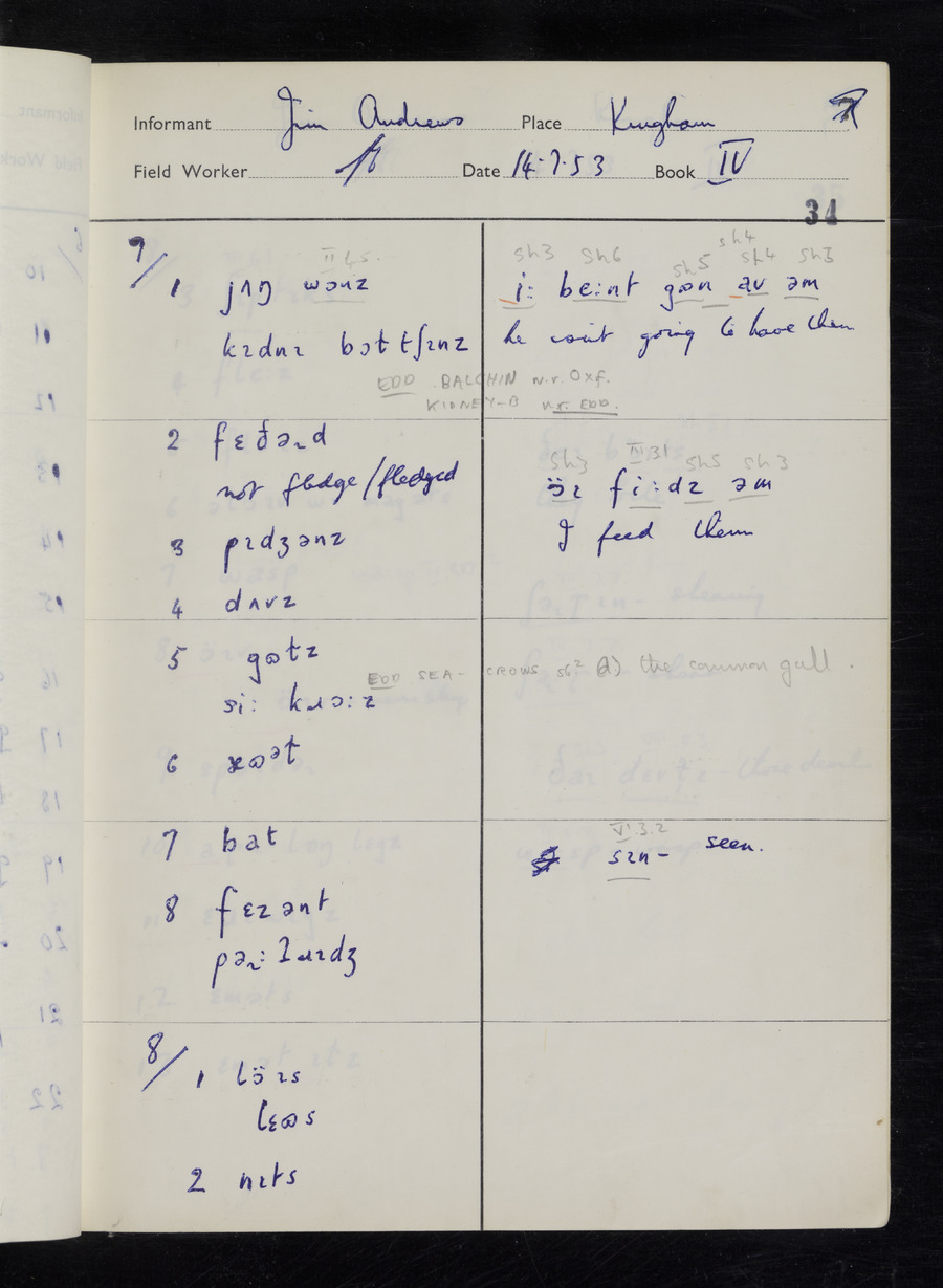 Interviews have been carried out by fieldworker Stanley Ellis. There are three informants for this response book - Henry Hall, Jim Andrews and Jack Marshall. Their responses can be found in the following books: Henry Hall - I, II, III Jim Andrews - IV, V, VI, VII, VIII Jack Marshall - IX
